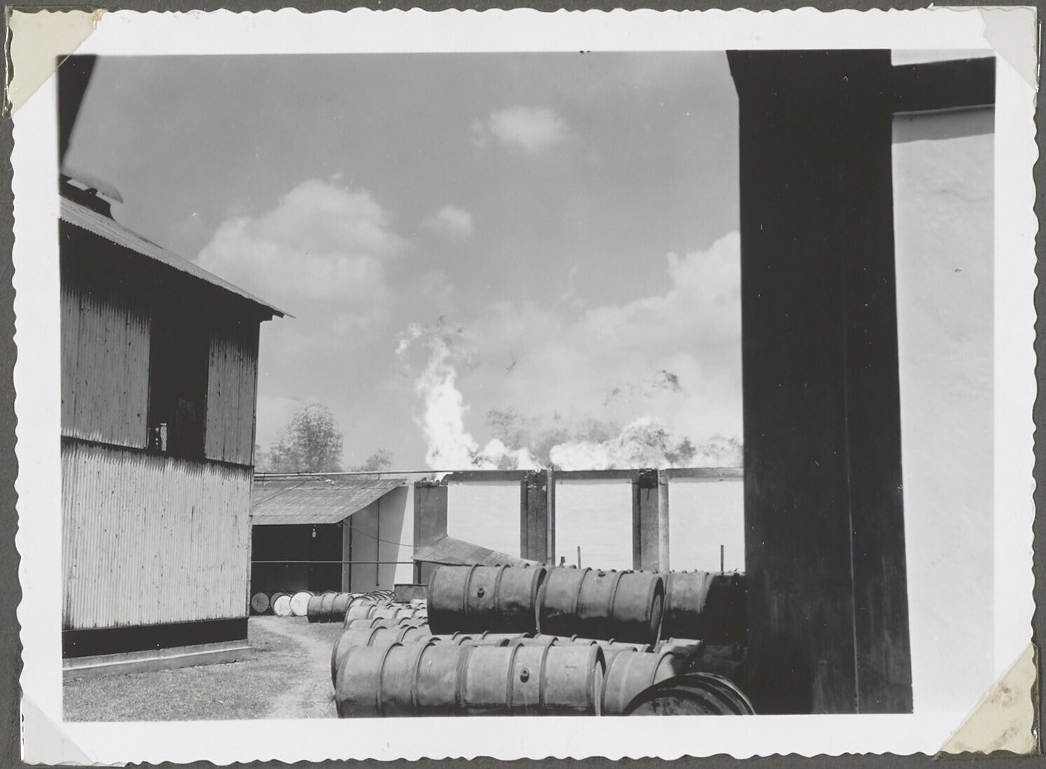 Buitenopslagplaats van drums bij de spiritusfabriek ...