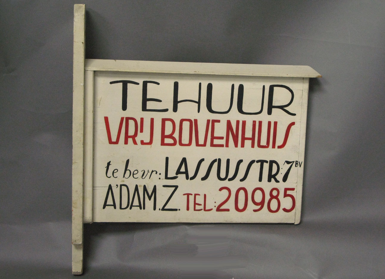 Uithangbord TE HUUR/ VRIJ BOVENHUIS