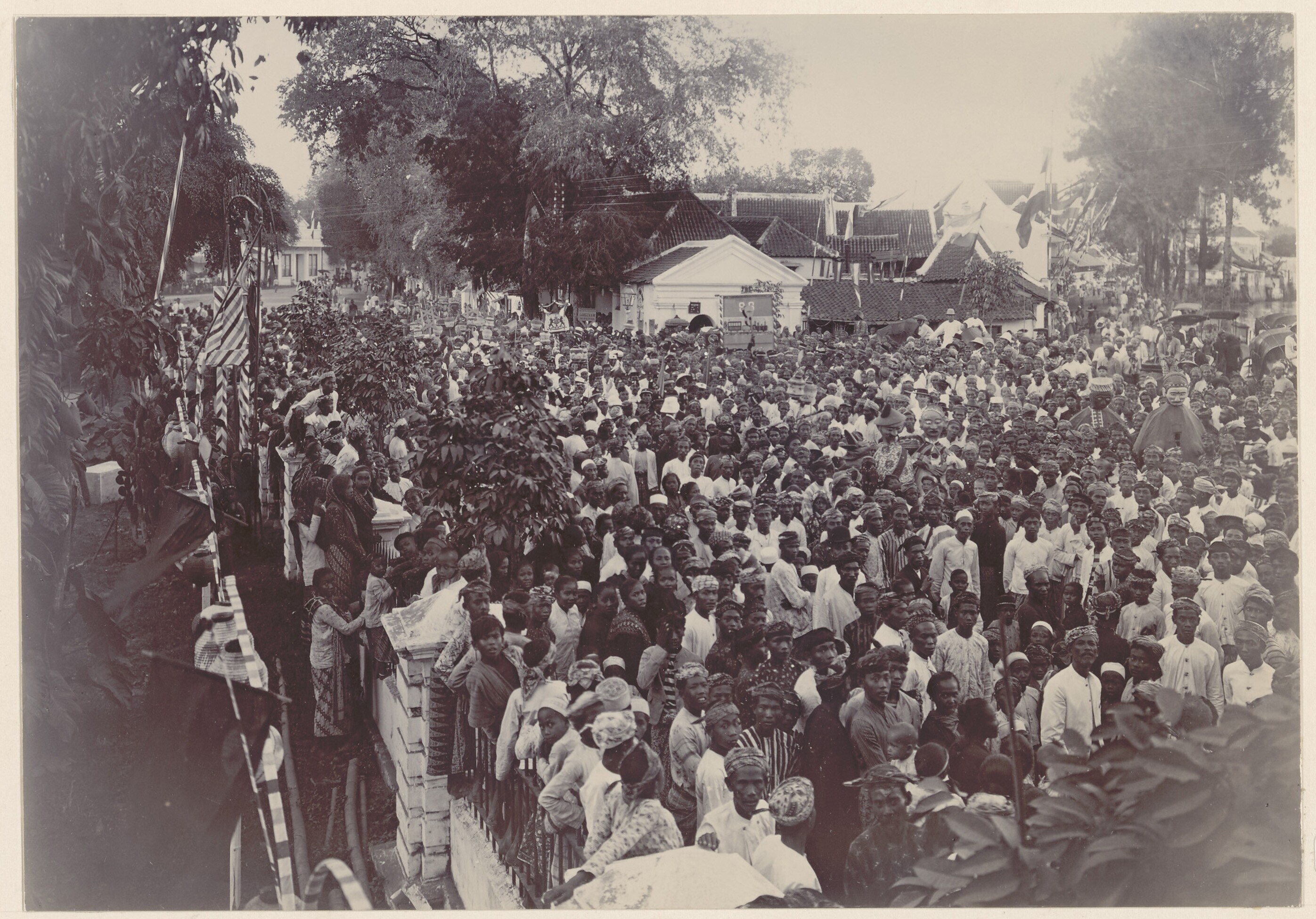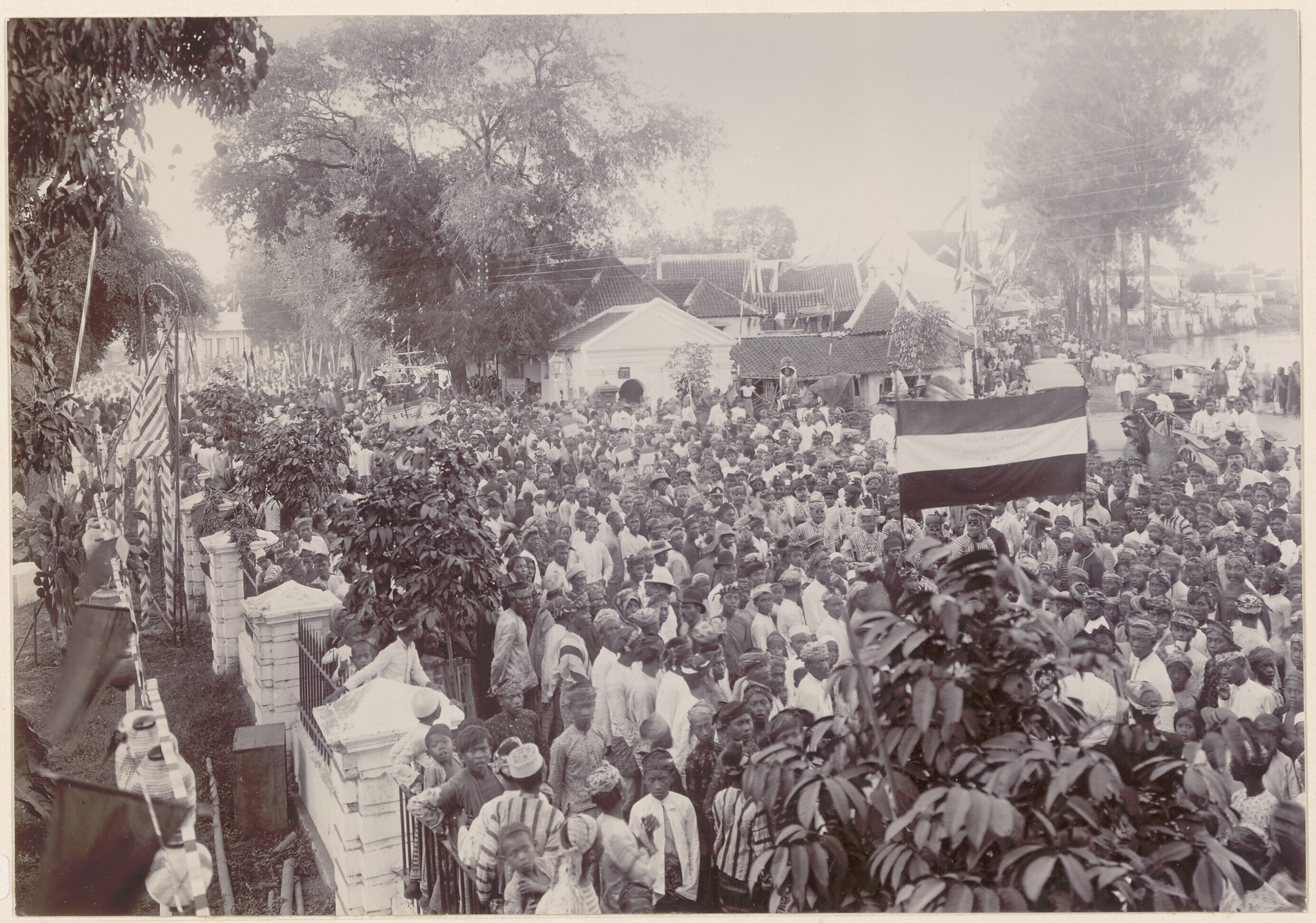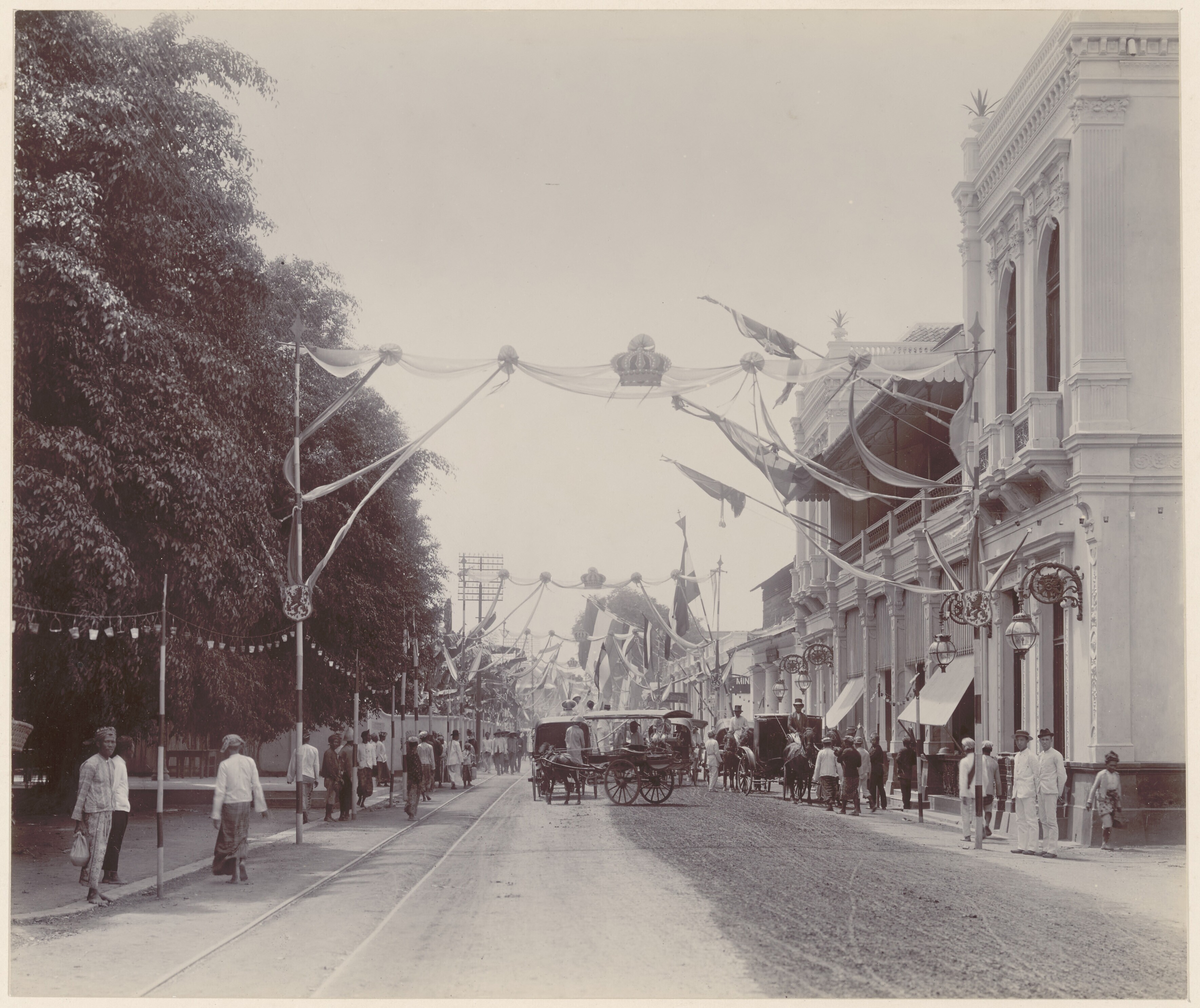 Straatgezicht tijdens de kroningsfeesten in Soerabaj...