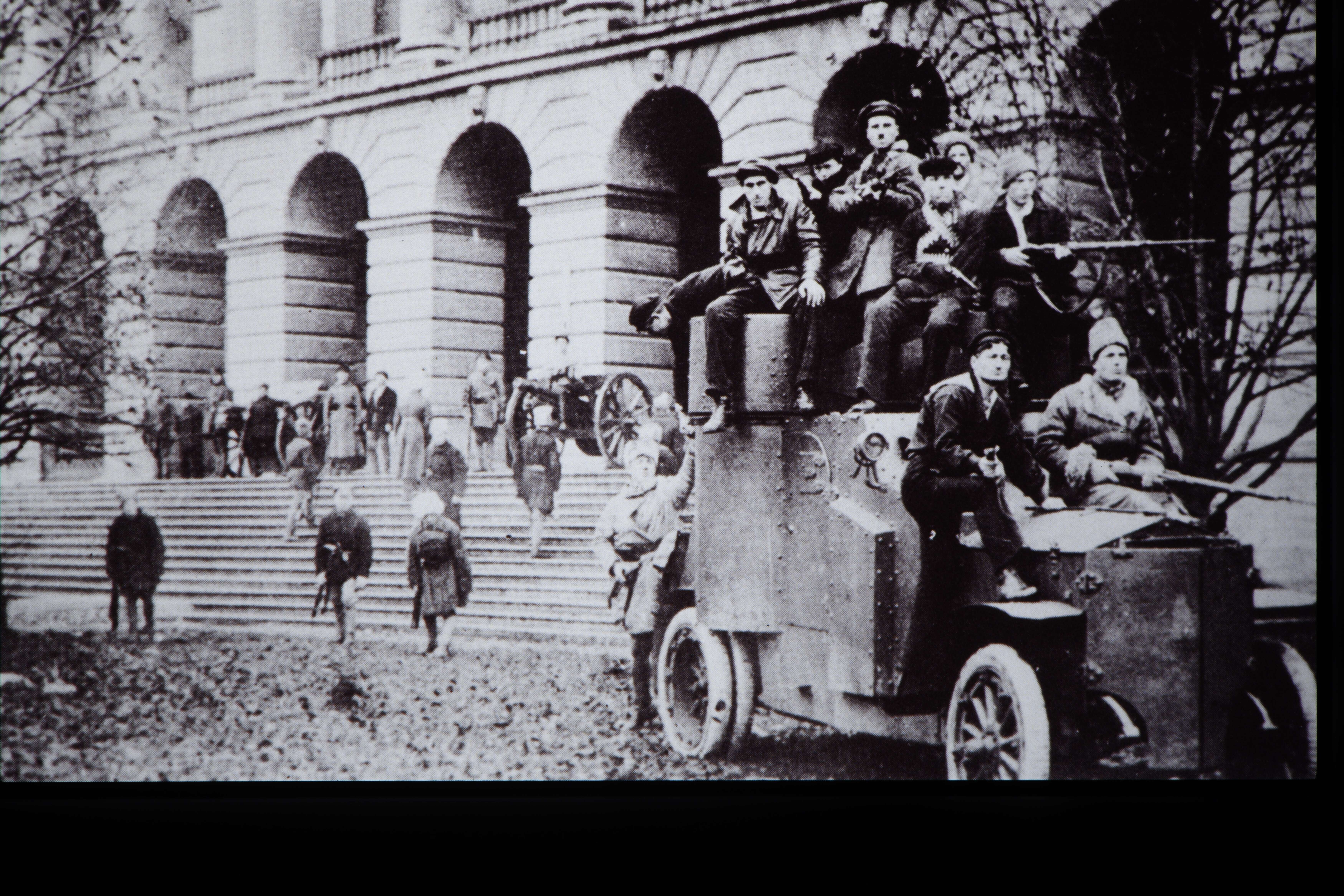 Onderdeel van het 3-scherms diaprogramma van de tent...