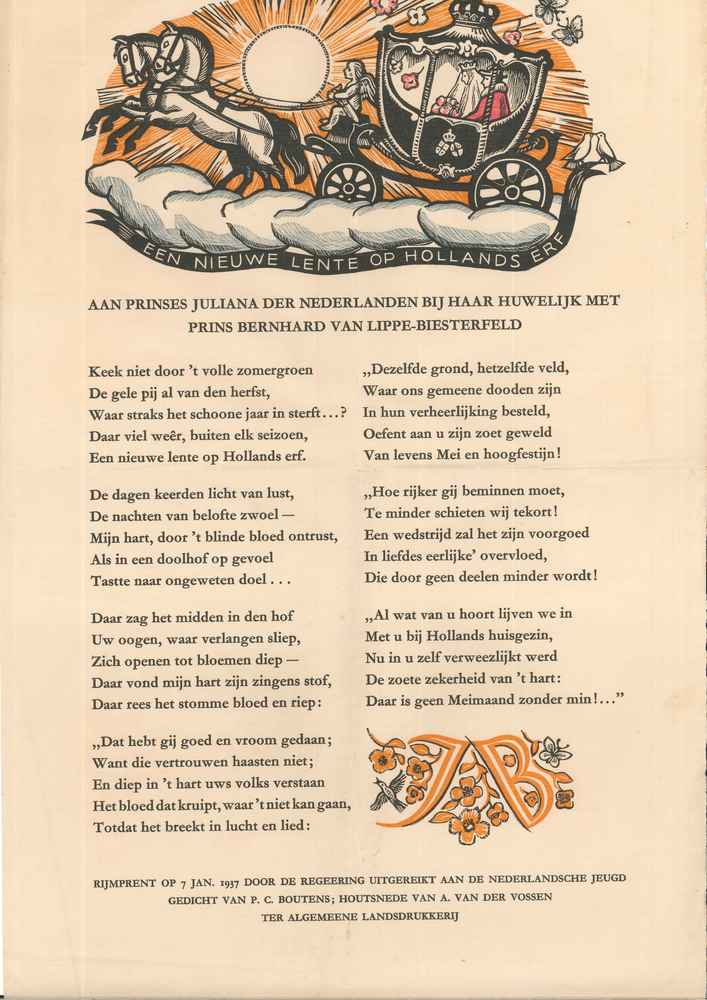 Affiche gedicht ter gelegenheid huwelijk Juliana met...