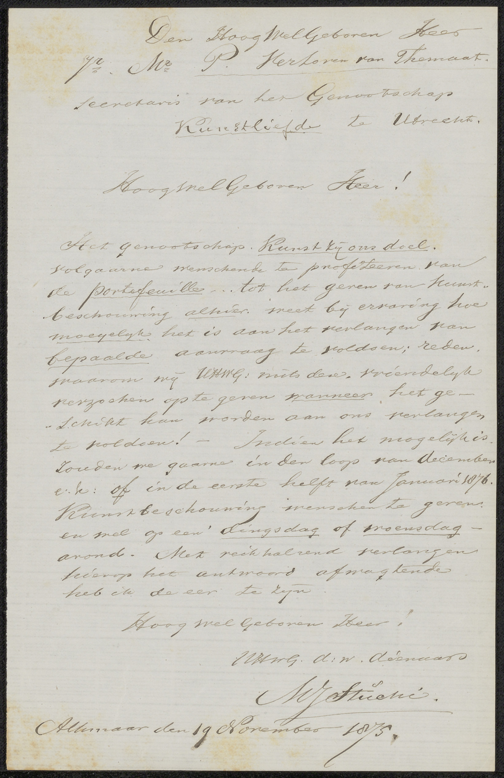 Brief aan G.M.C. Hooft, secretaris van de commissie ...