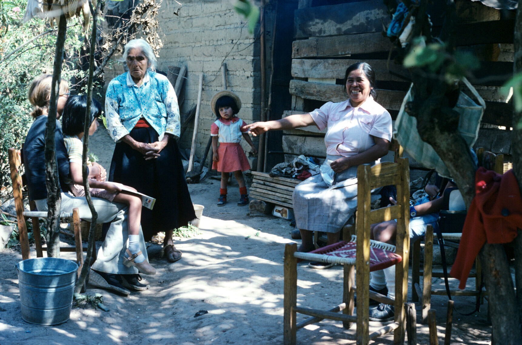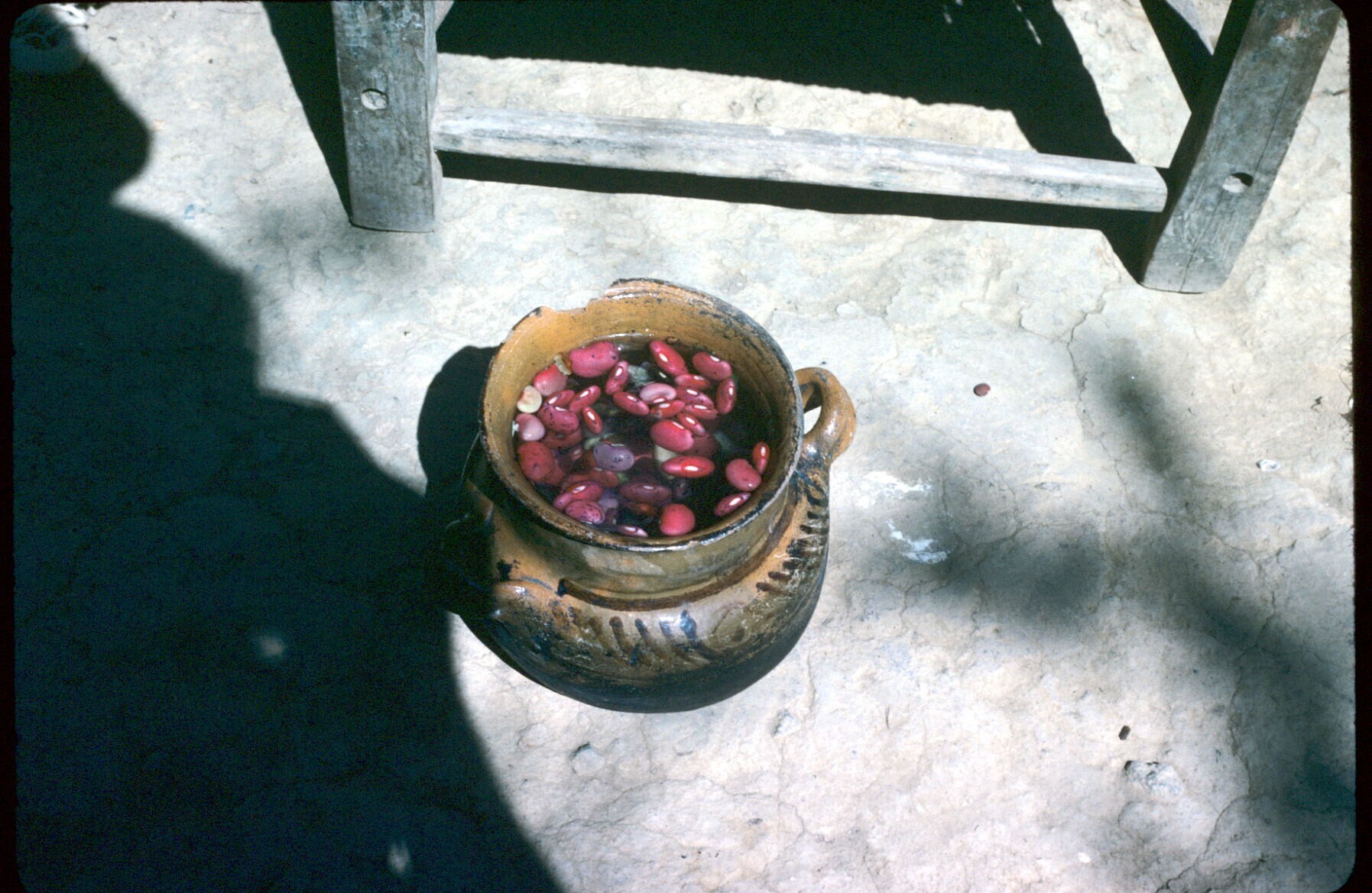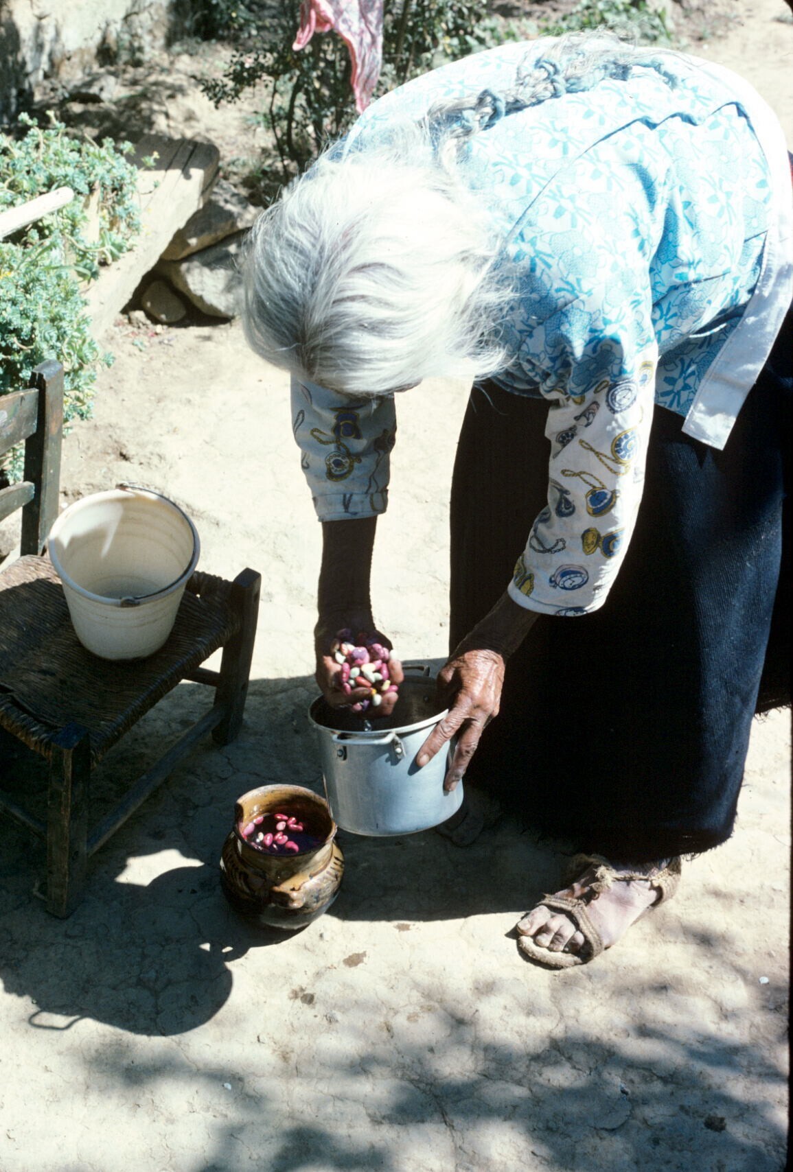 bejaarde verwante van Loreto Jarriza, bonen doppend ...