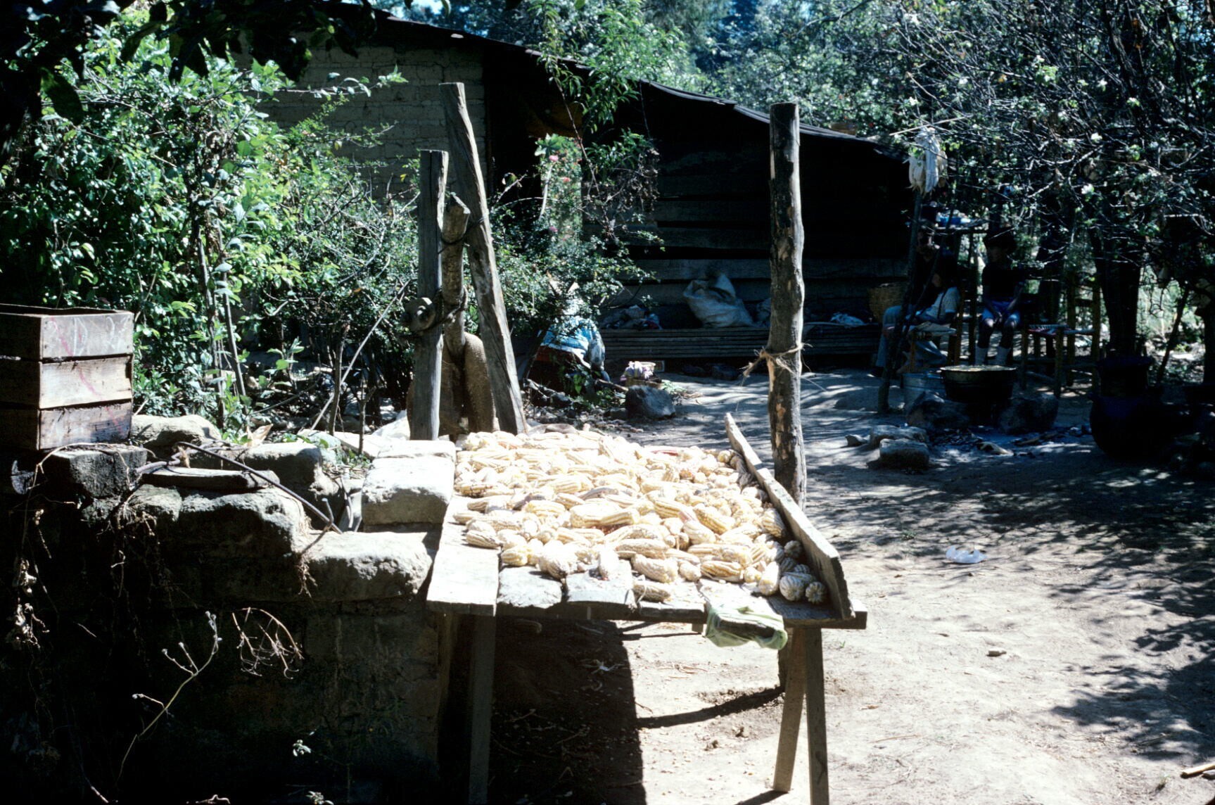 te drogen liggende maïskolven bij huis van Doña Lore...