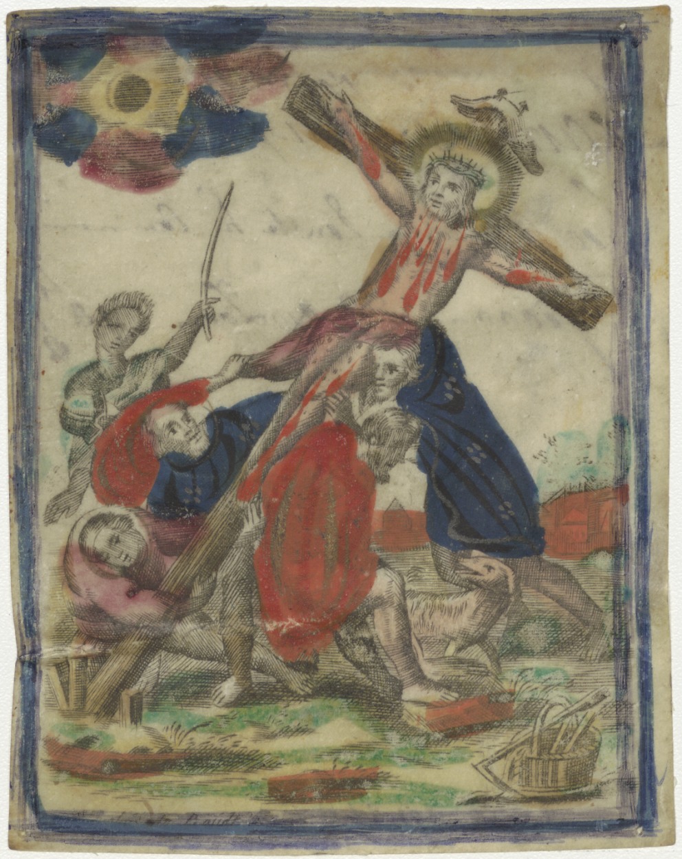 Oprichting van het kruis van Christus, ingekleurd, k...