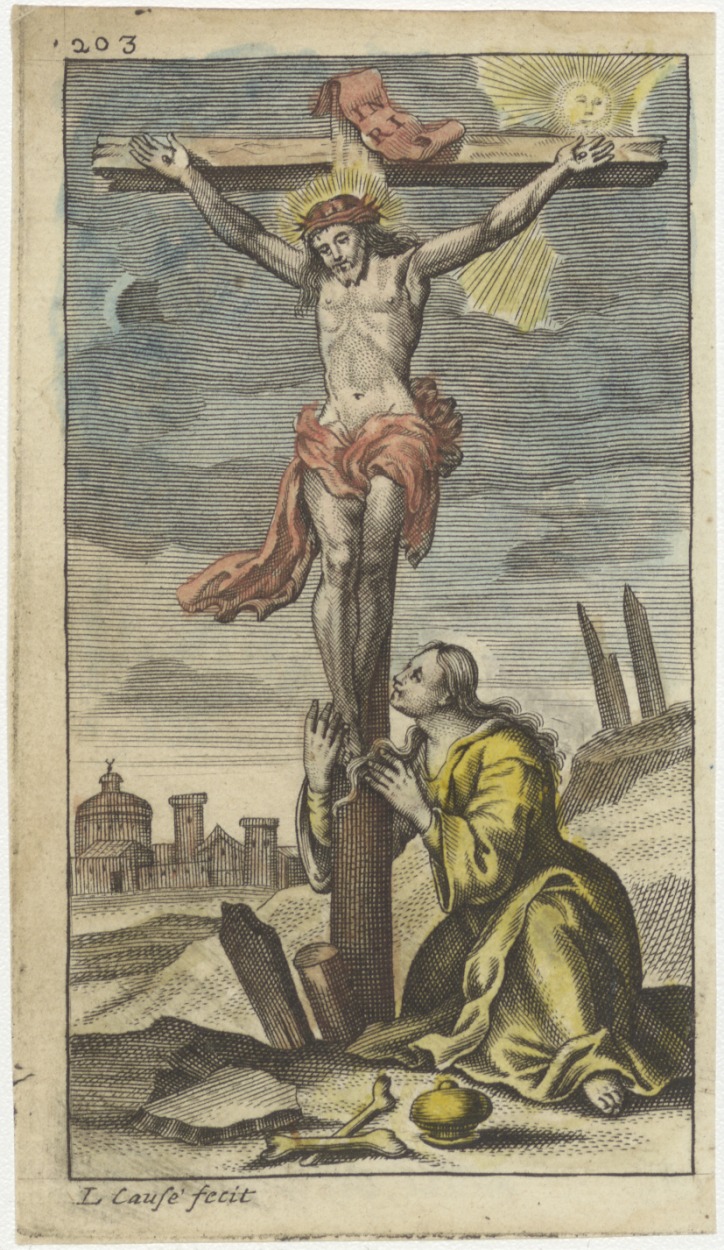 Gekruisigde Christus met Maria Magdalena, ingekleurd