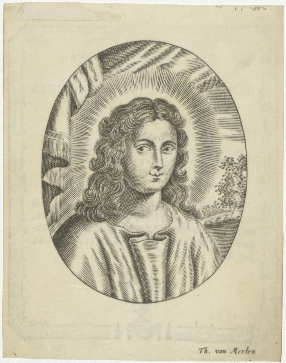 Christus als jongeling, kz. Bid voor ziel Rosette Ma...