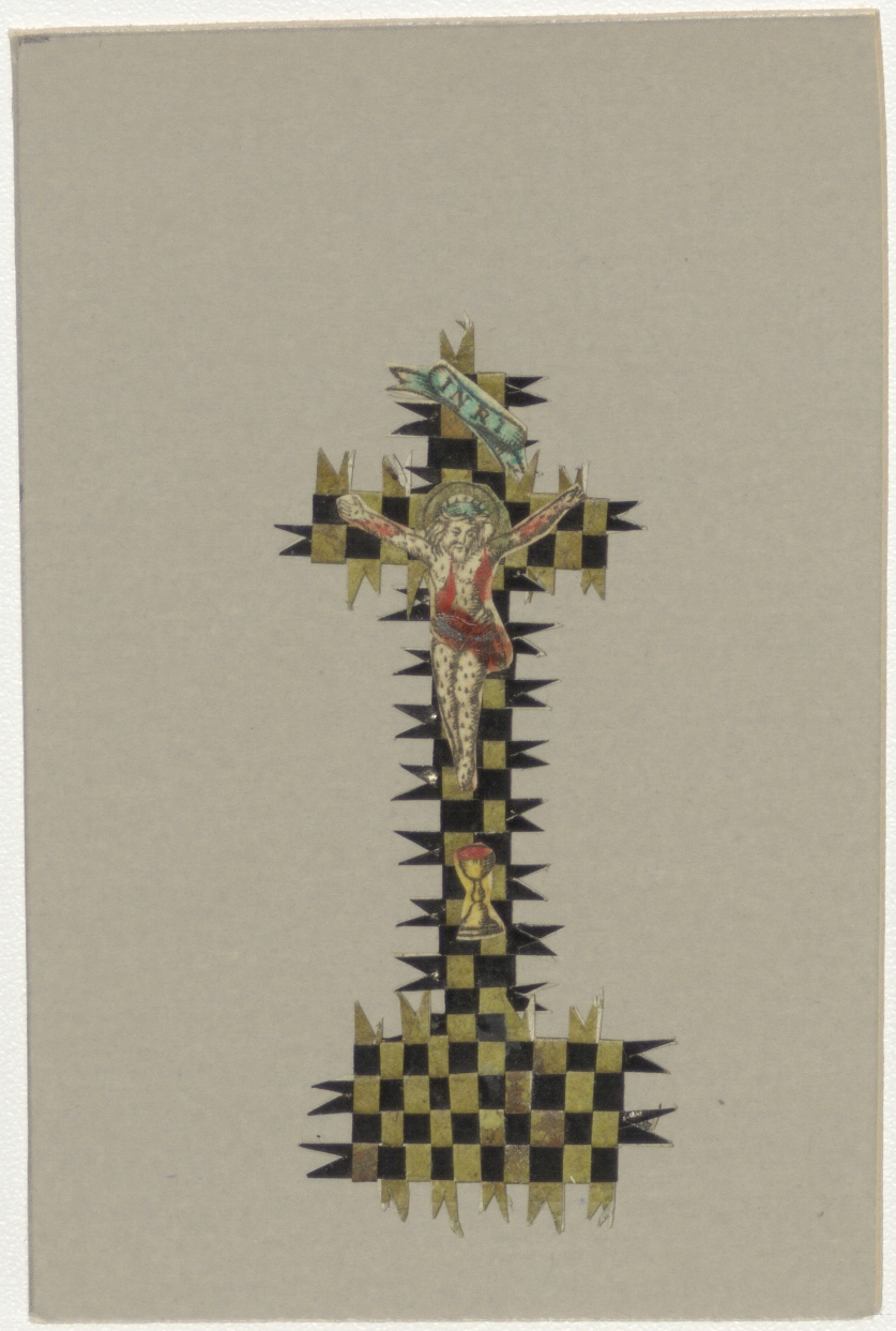 Gekruisigde Christus op kruis van gevlochten papier