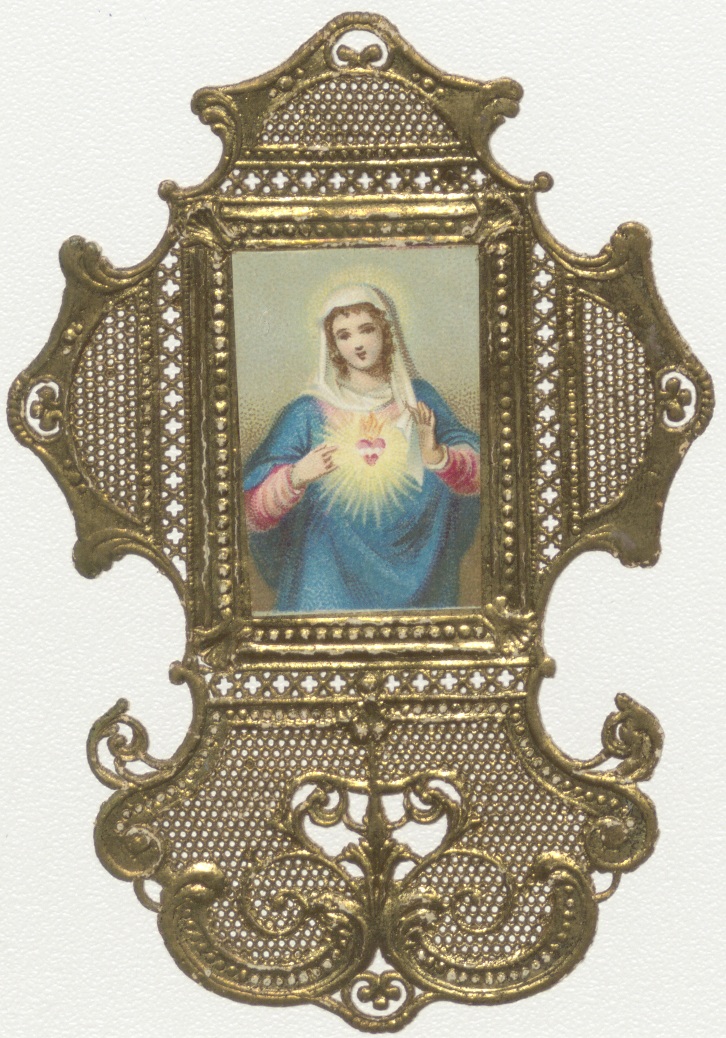 Maria met H. Hart, kz. Opschrift "Souvernir de premi...