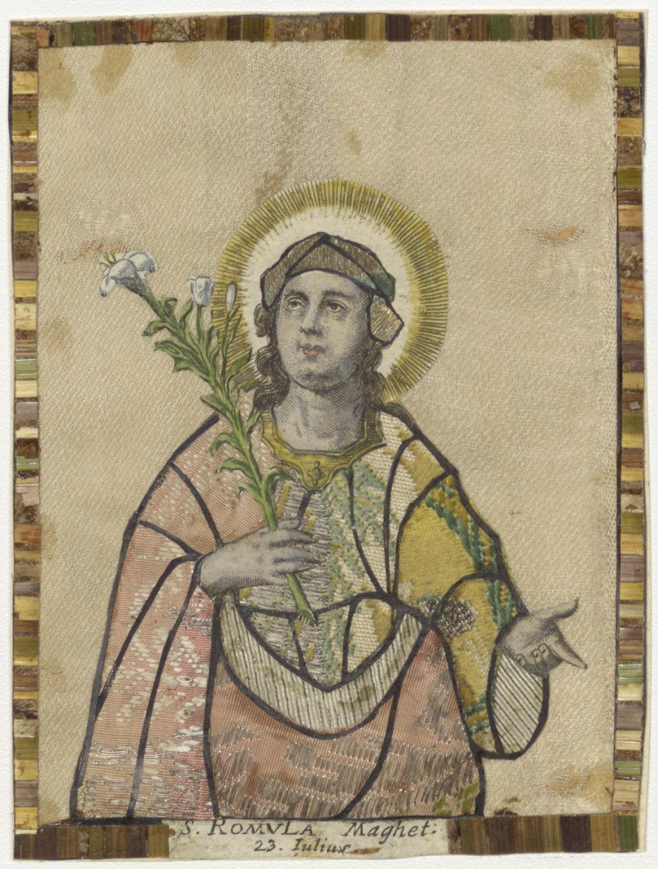 H. Romula, maagd, met geappliceerd borduurwerk en st...