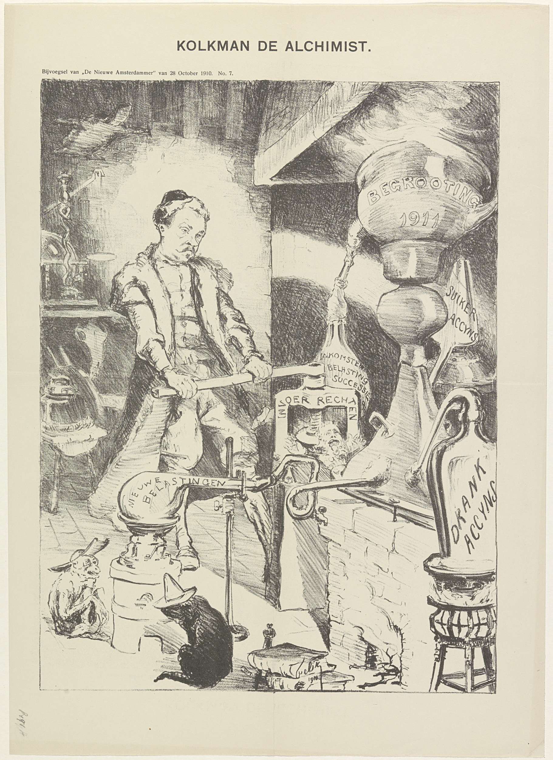 Spotprent op de Amsterdamse raadslid L. Simons, 1910