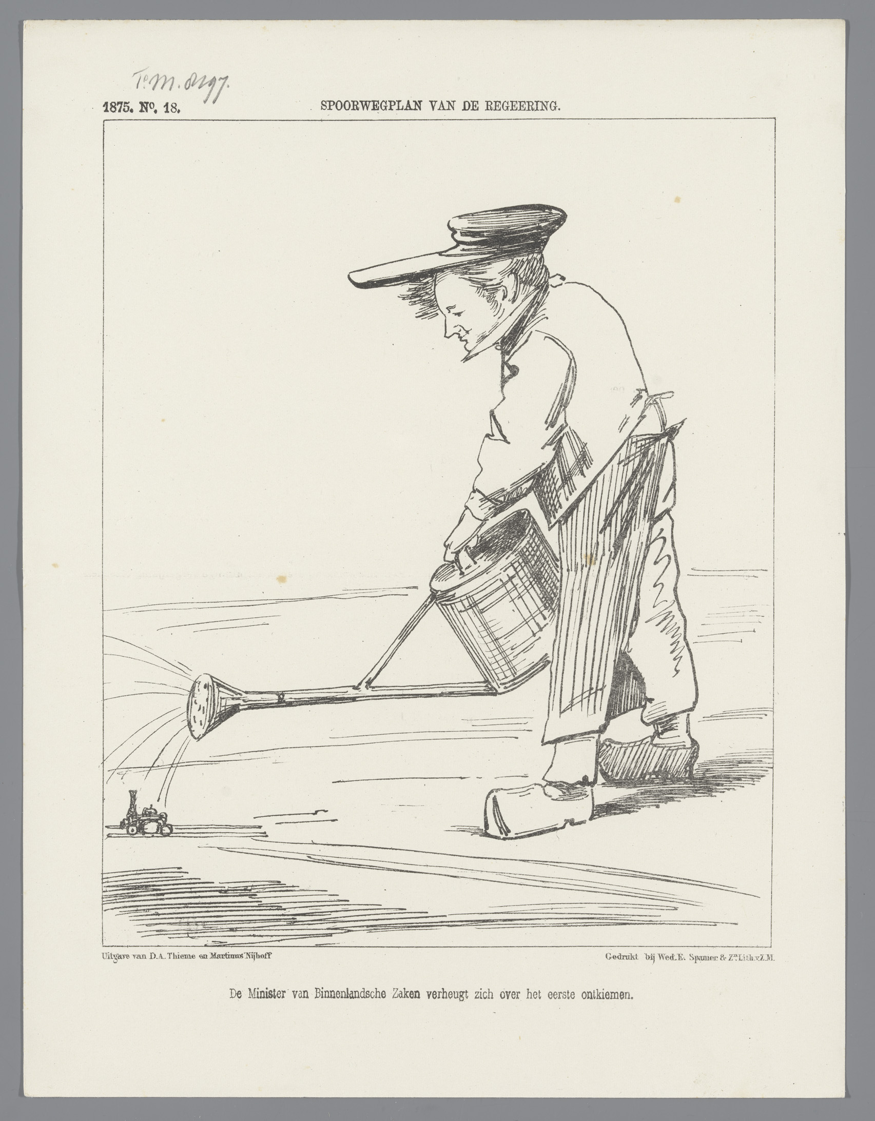 Spotprent nav het wetsontwerp over de spoorwegen, 1875