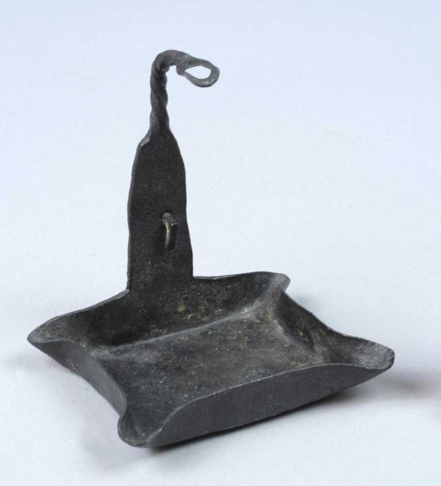olielamp - ijzeren bakje om te hangen -, met in de h...