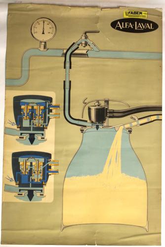 Tekening op papier van een ALFA-LAVAL melkmachine ge...