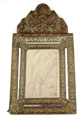 Spiegel van glas met een decoratieve koperen lijst e...