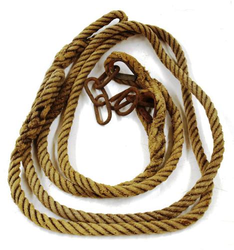 Streng van touw met metalen kettingdelen gebruikt om...
