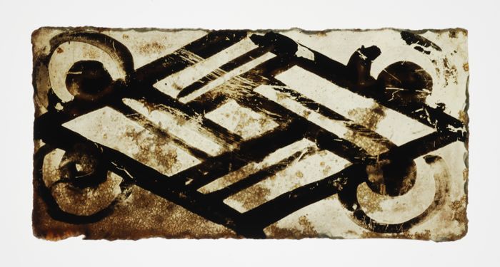 Kleine ruit van groenig vensterglas met gebrandschil...