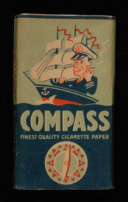 Pakje ongevouwen sigarettenpapier met zeilschip "COM...