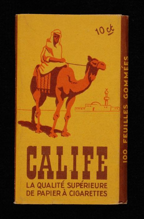 Pakje ongevouwen sigarettenpapier met kameel "Calife"