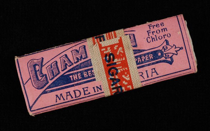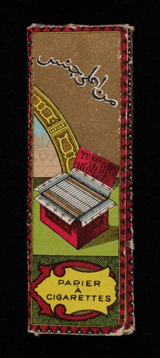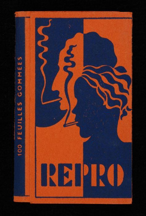 Pakje sigarettenpapier met gestileerde rokende sfinx...