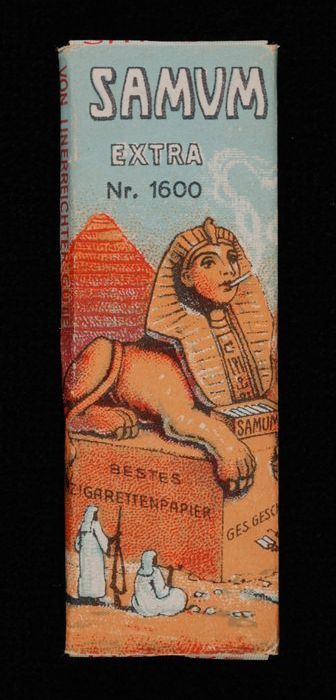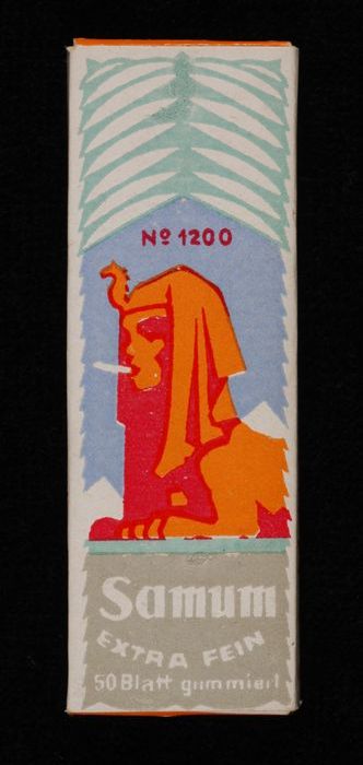 Pakje sigarettenpapier met rokende sfinx "SAMUM"
