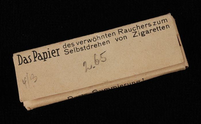Pakje ongevouwen sigarettenpapier met vogel "OLLESCH...