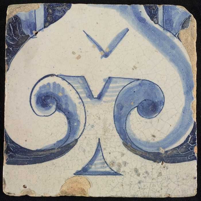 Tegel van schoorsteenpilaster, blauw op wit, deel va...