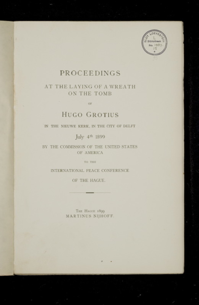 Hugo Grotius celebration, Delft, July 4th 1899