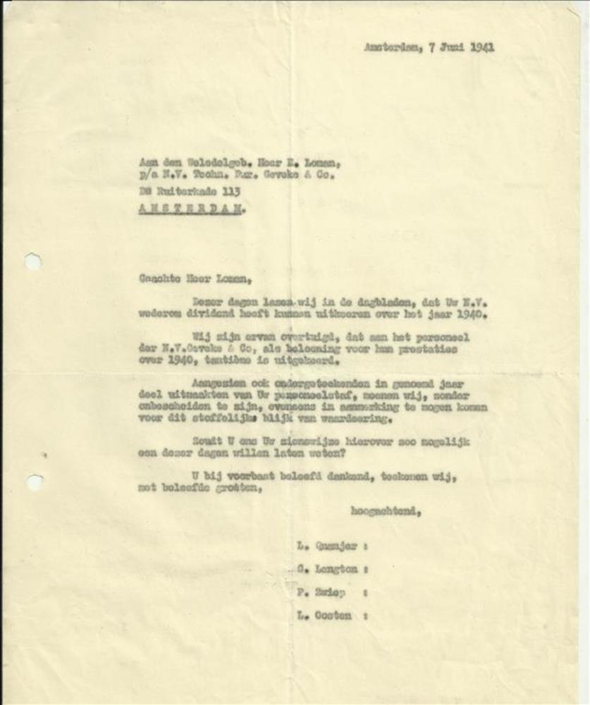 Aan dhr E. Loman p/a N.V. Technisch Bureau Geveke en...
