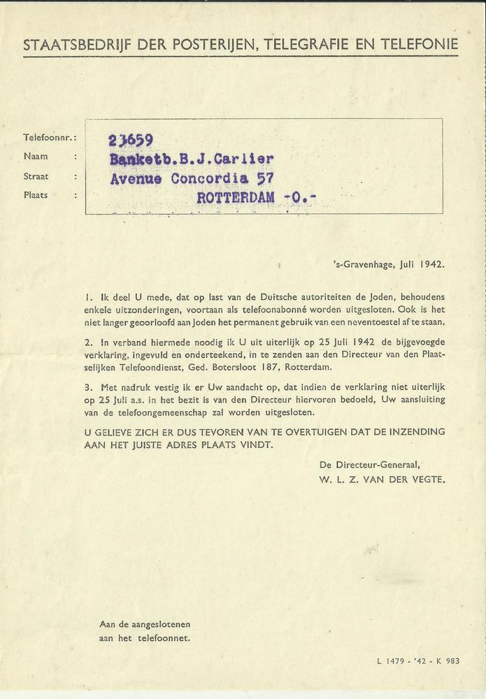 Mededeling van het Staatsbedrijf der Posterijen, Tel...