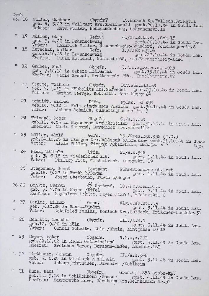 Belegungsliste für den Kriegerfriedhof in Gouda