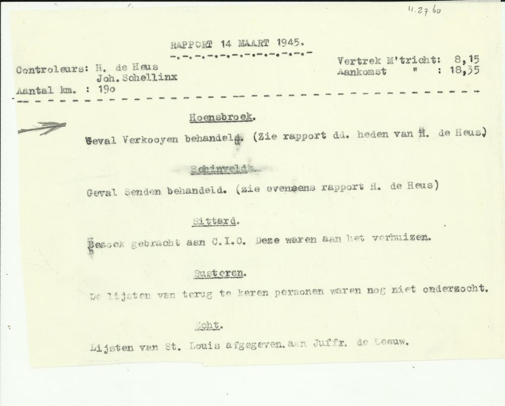 Rapport 14 maart 1945 over verrichte acties door J. ...