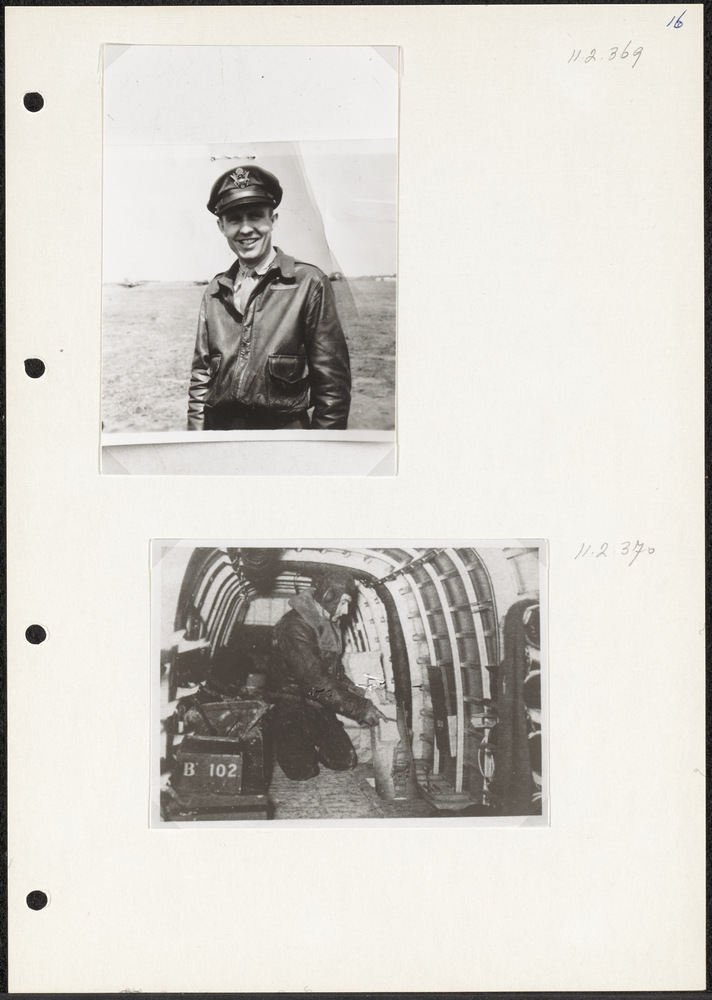 Foto van Britse vlieger die in een bommenwerper pamf...