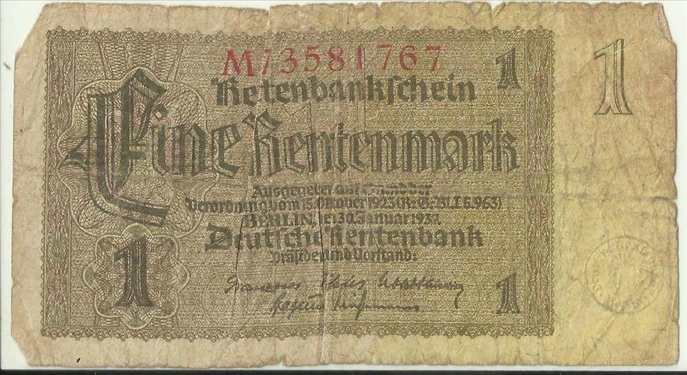 Bankbiljet, Duits 1937 Rentenbankschein - eine Rente...