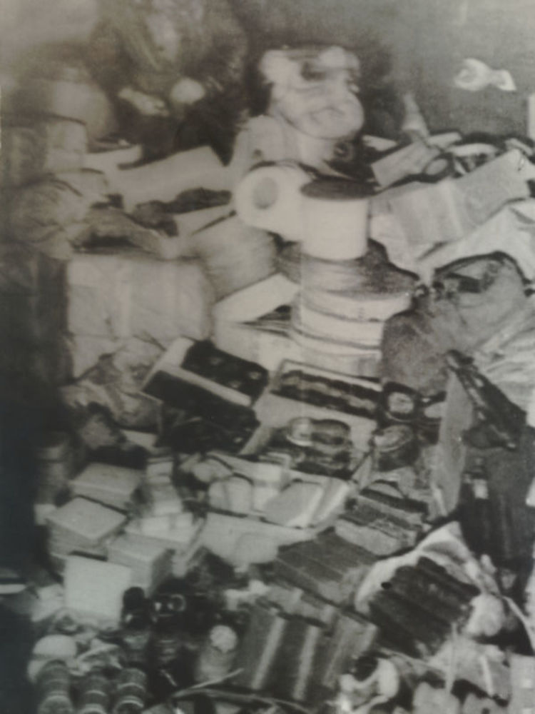 Drie verzetsmensen in onderduikershol met veel dinge...
