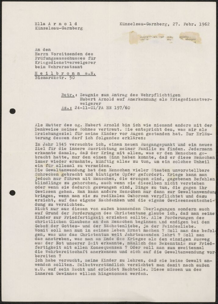 Cremekleurge Envelop aan Günther Rutenbeck