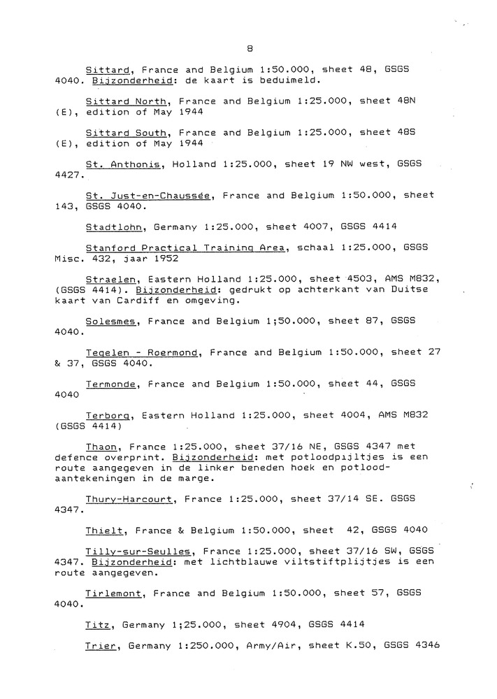 inventaris van stafkaarten ontvangen van reverent L....