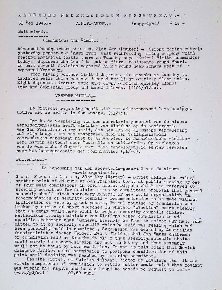 Vel: Algemeen Nederlandsch Persbureau, mededelingen,...