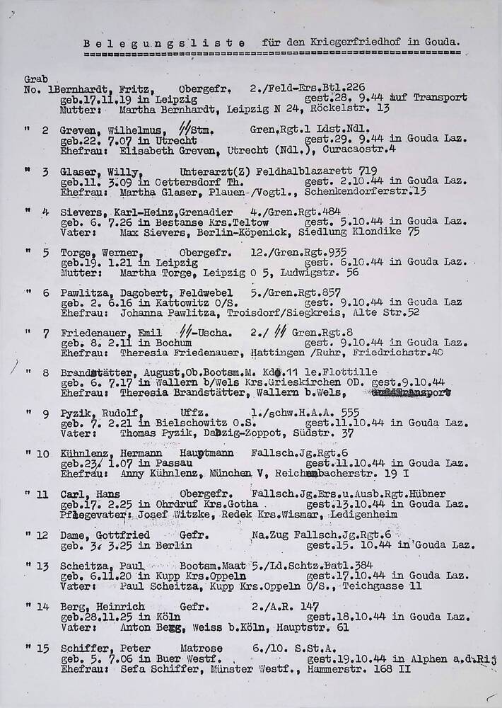 Belegungsliste für den Kriegerfriedhof in Gouda