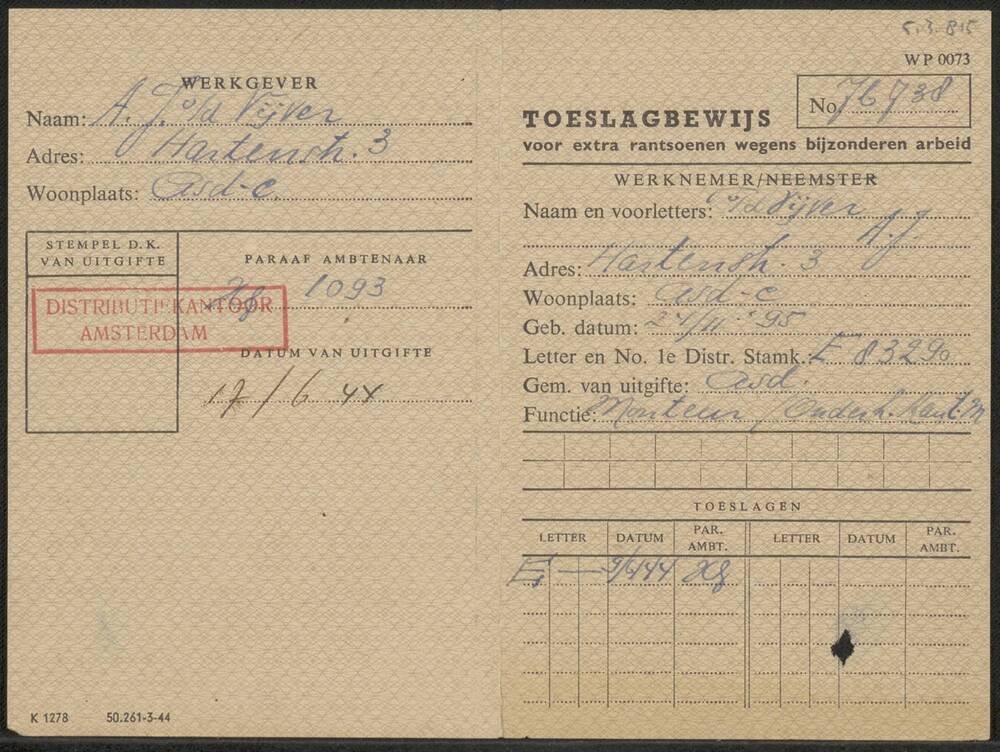 Toeslagbewijs voor extra rantsoenen (zie 5.3.786)