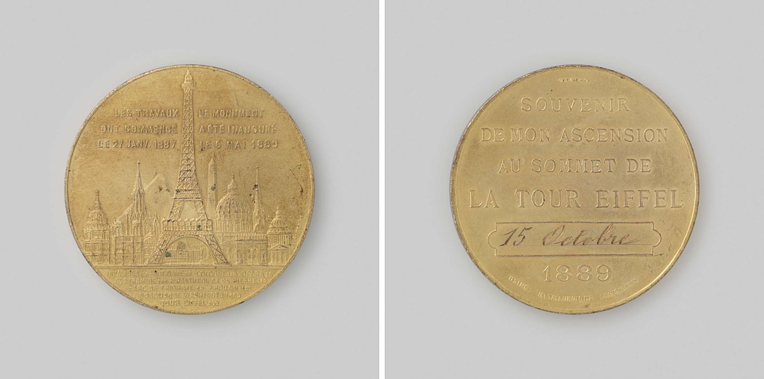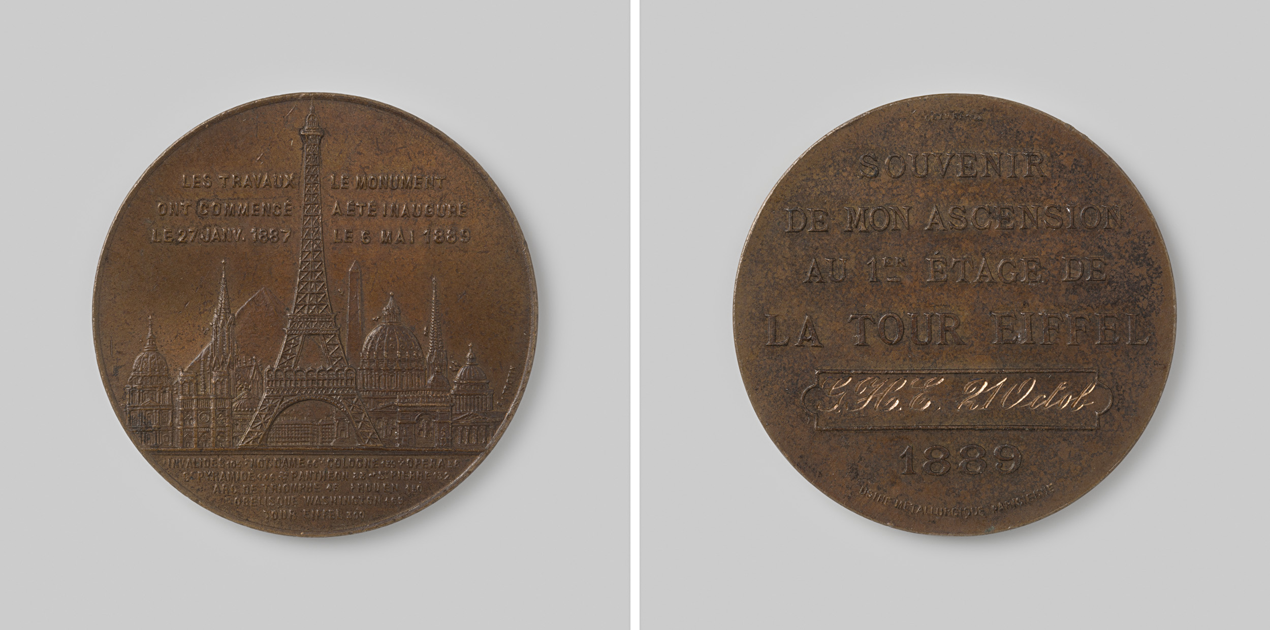 Herinnering aan de beklimming van de Eiffeltoren te ...