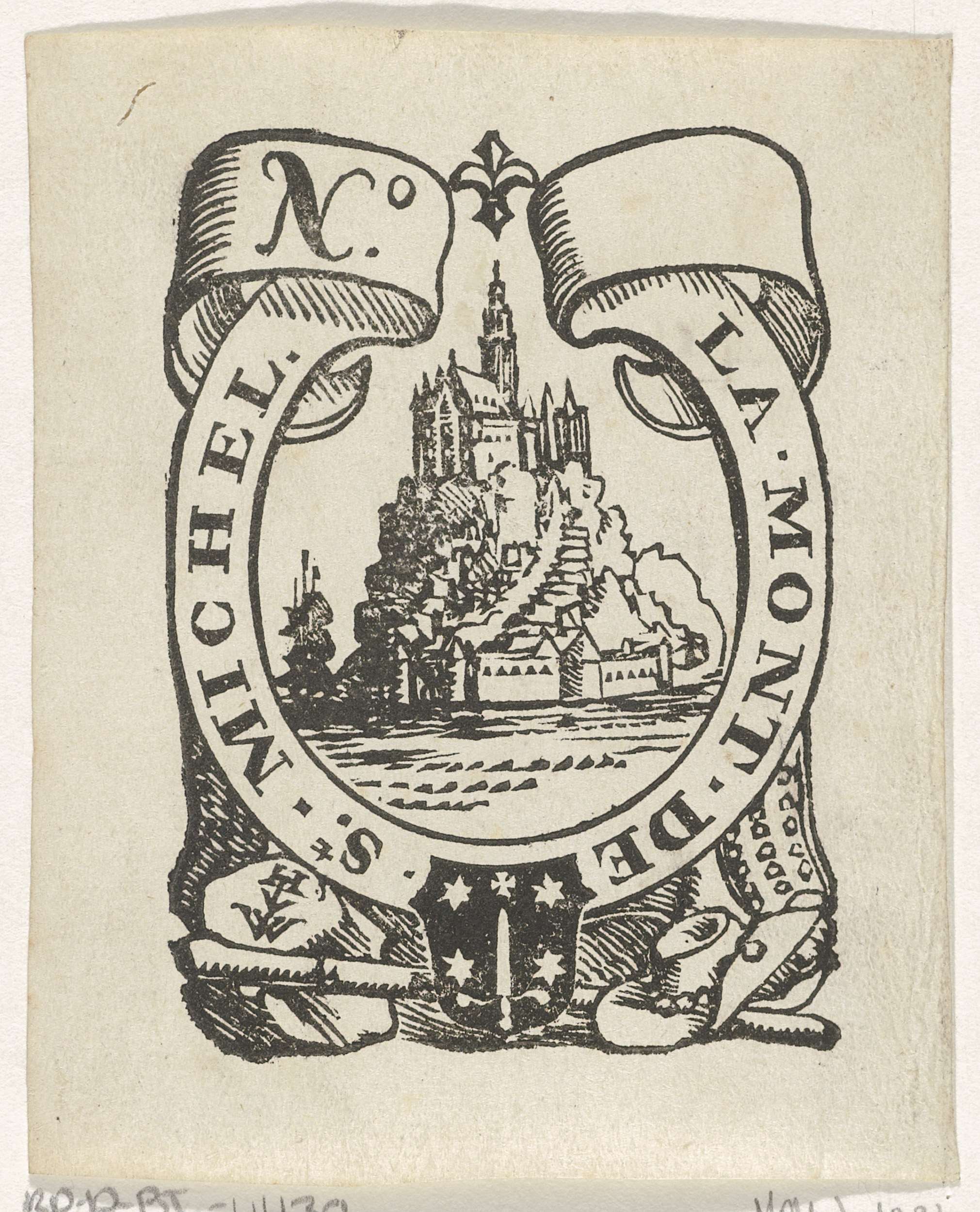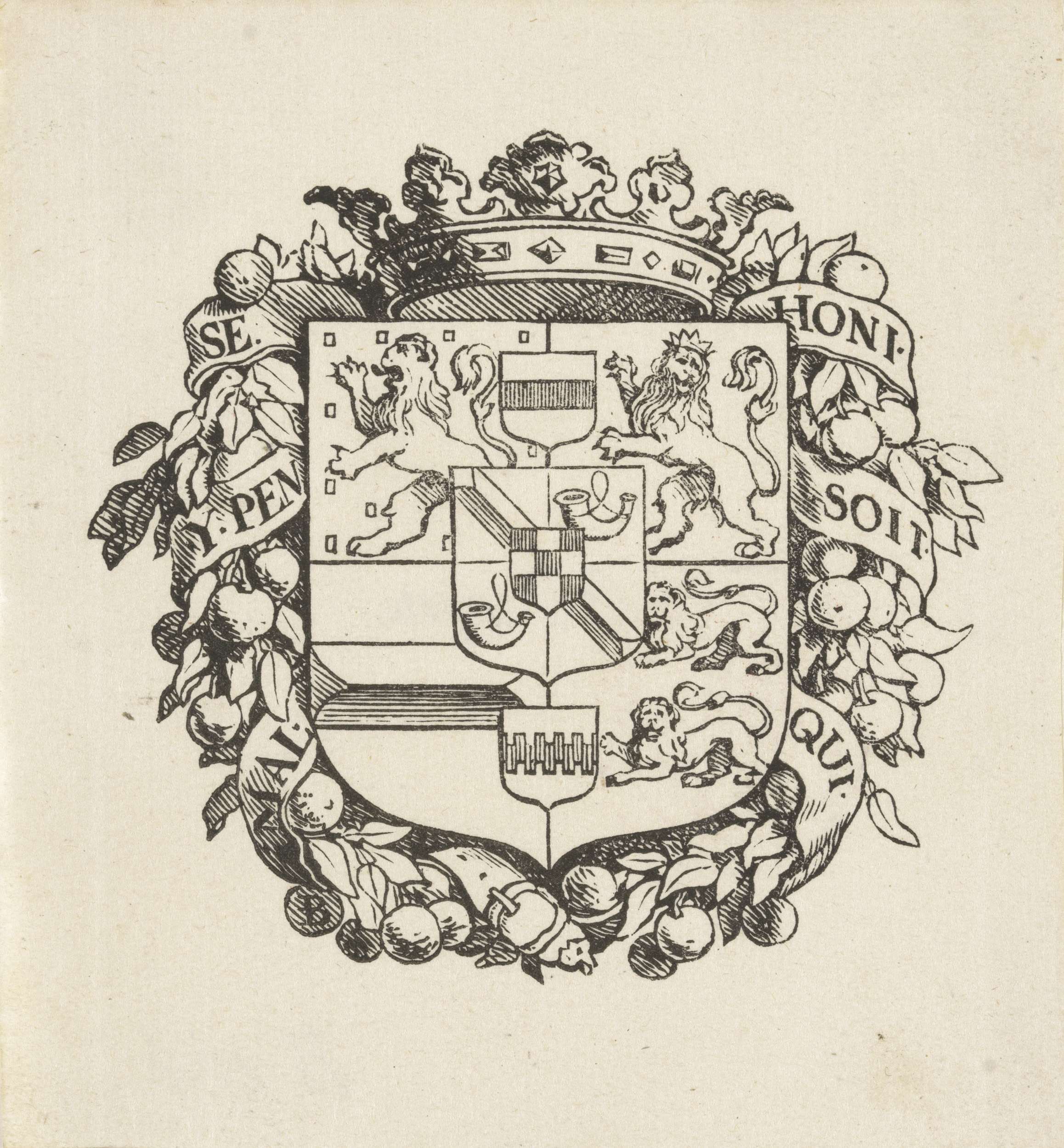 Vignet met een monogram, een kroon en het wapen van ...