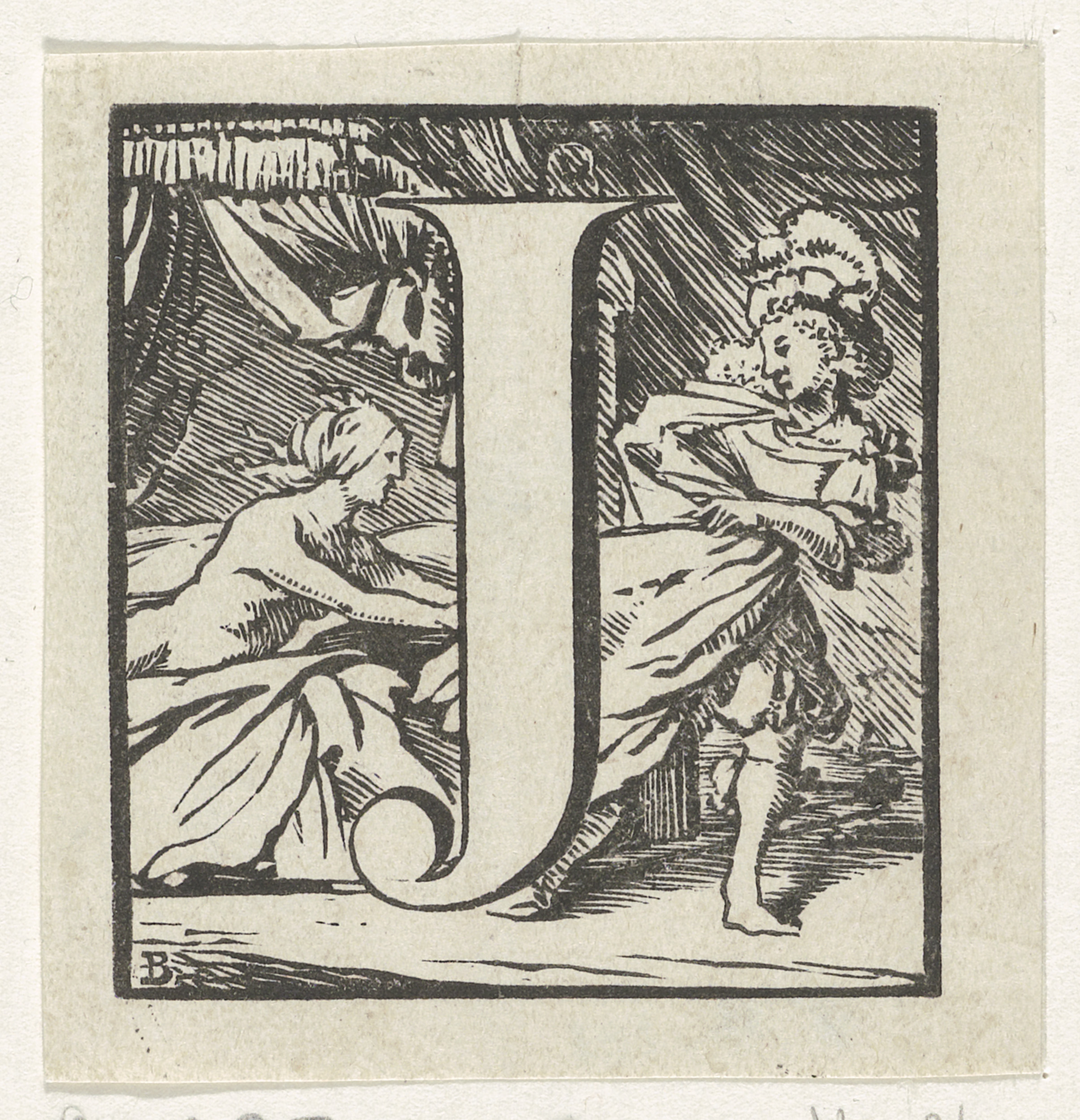 Letter B in een geornamenteerde omlijsting