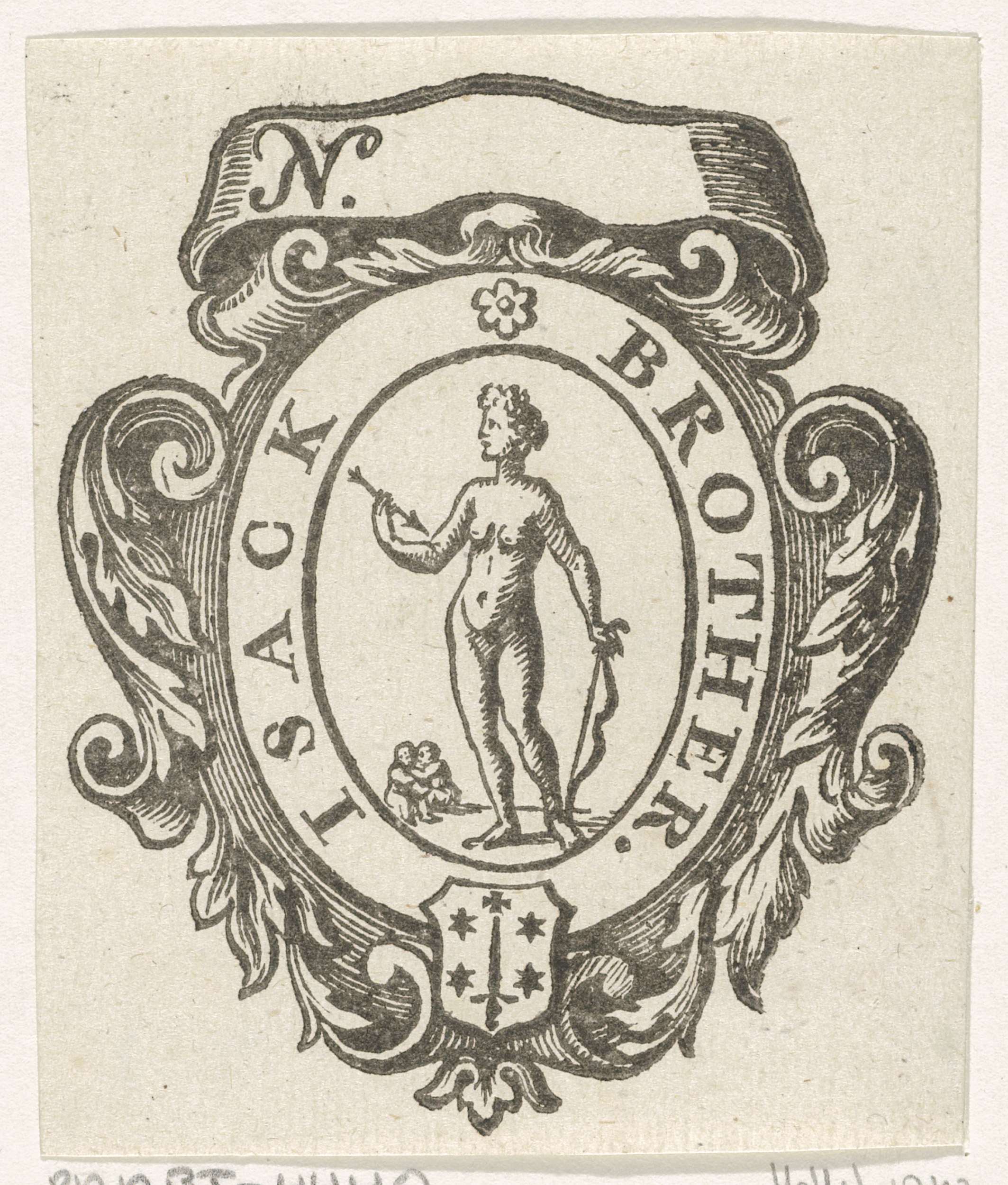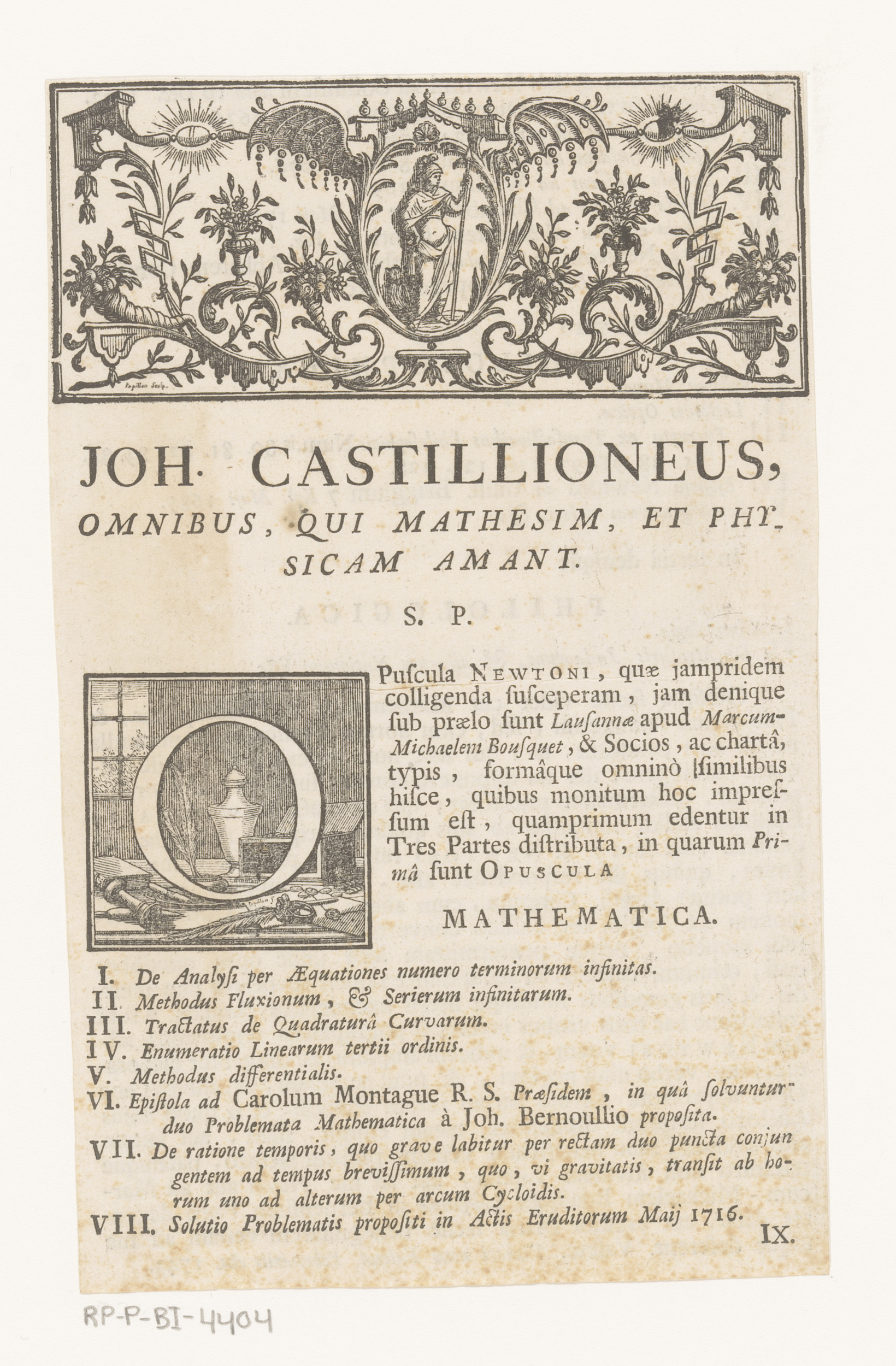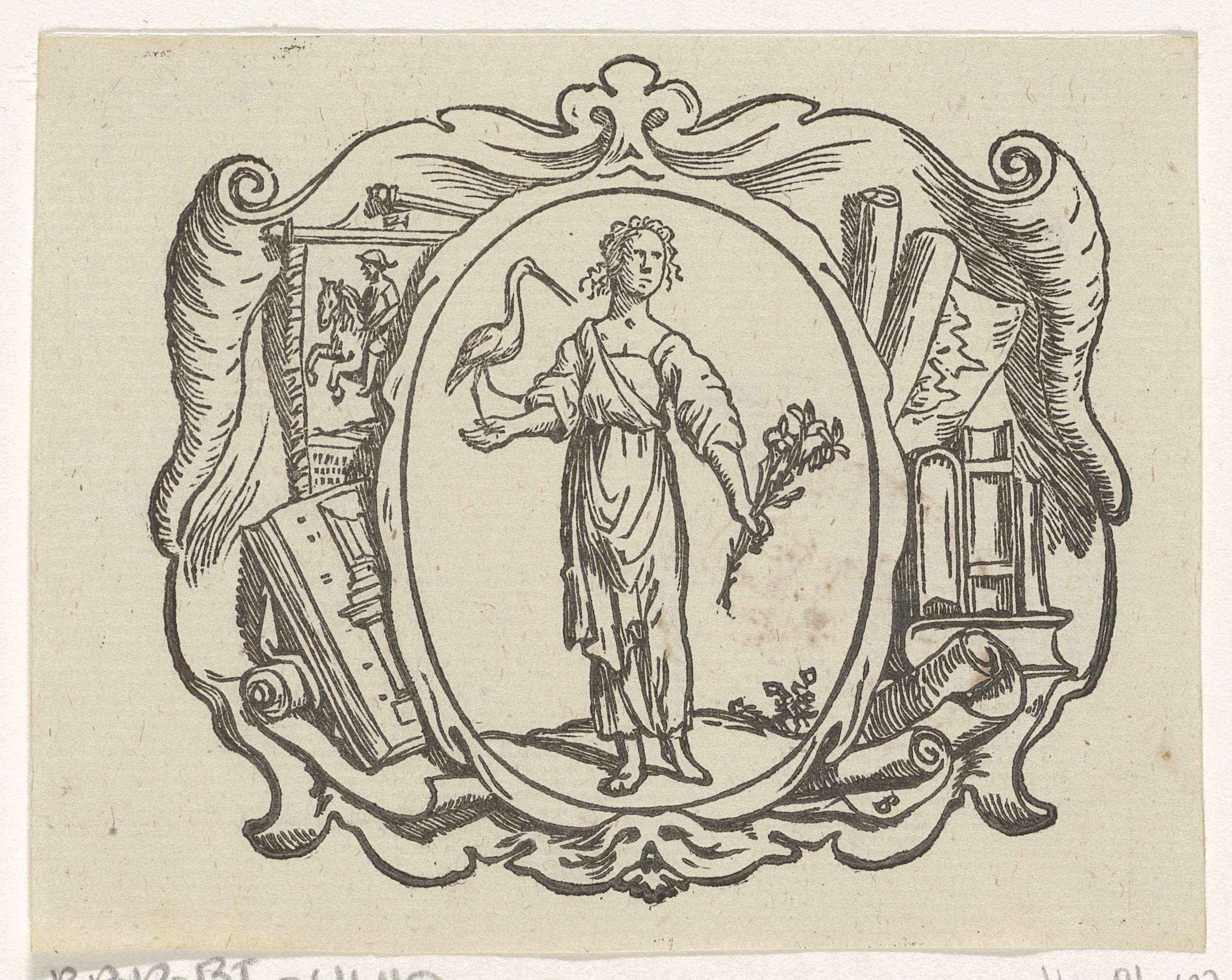 Ornament met Minerva en versierde initiaal met schri...
