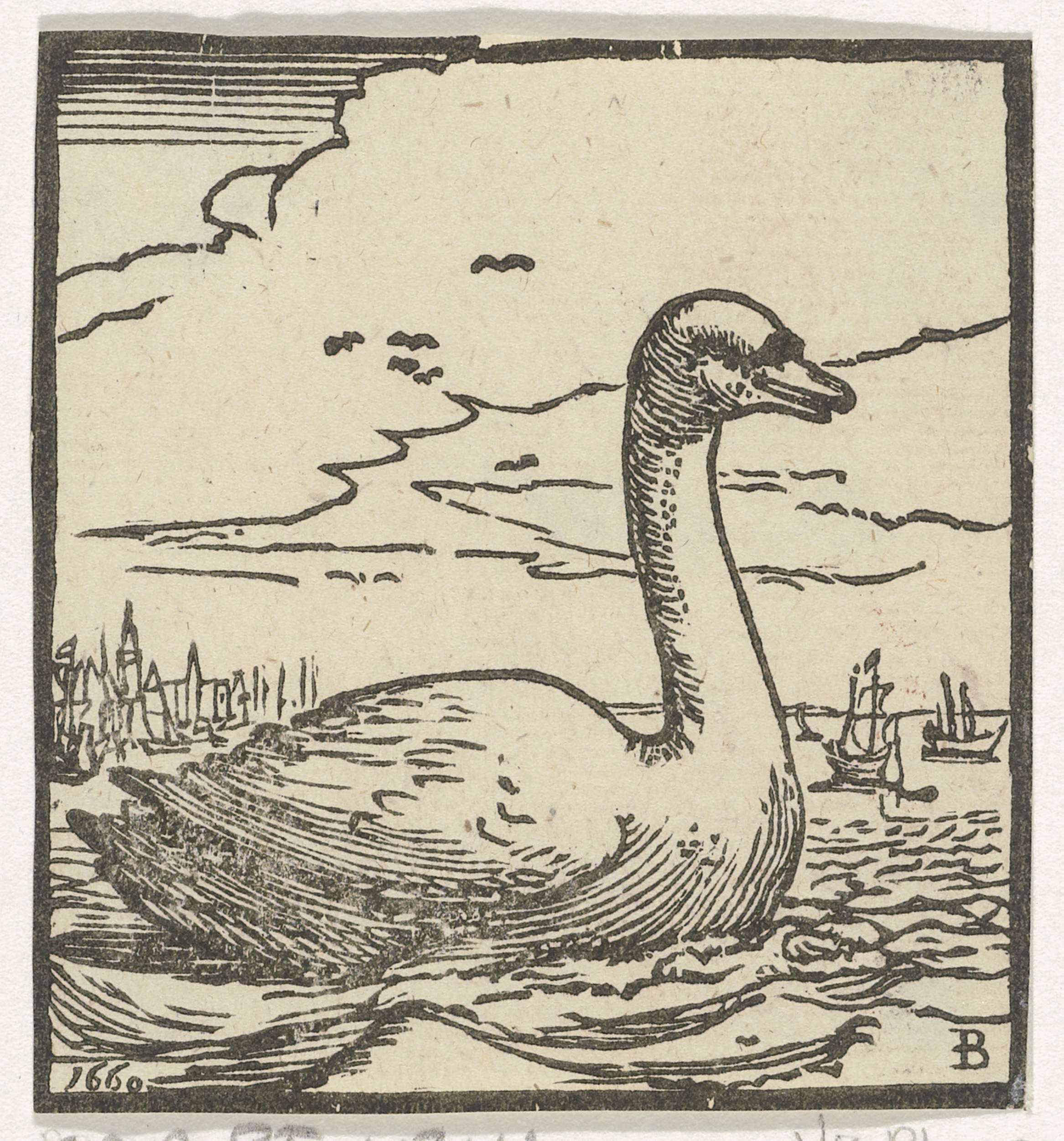 Letter B in een omlijsting met een vogel