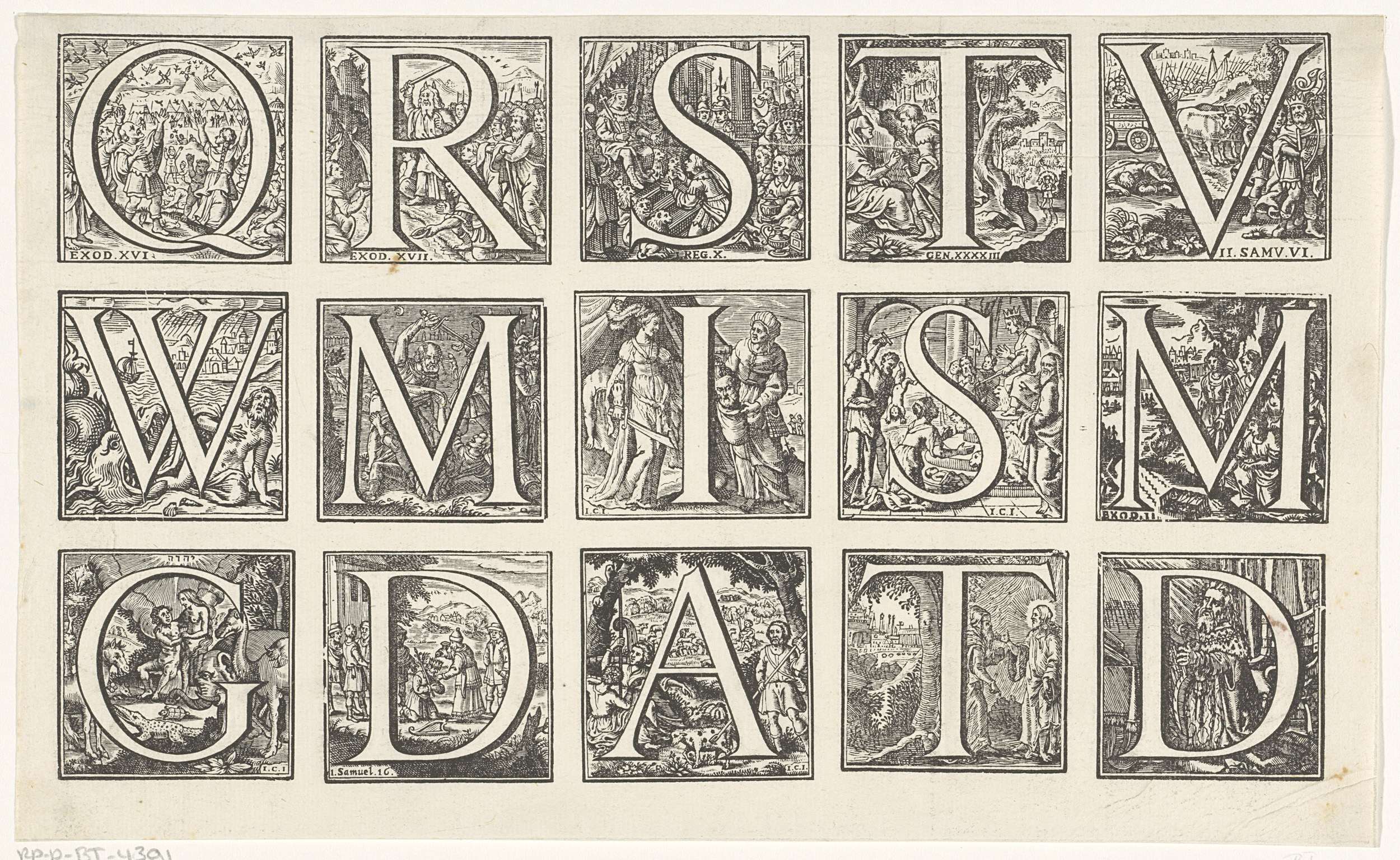 Letter R in een omlijsting met een bijbelse voorstel...