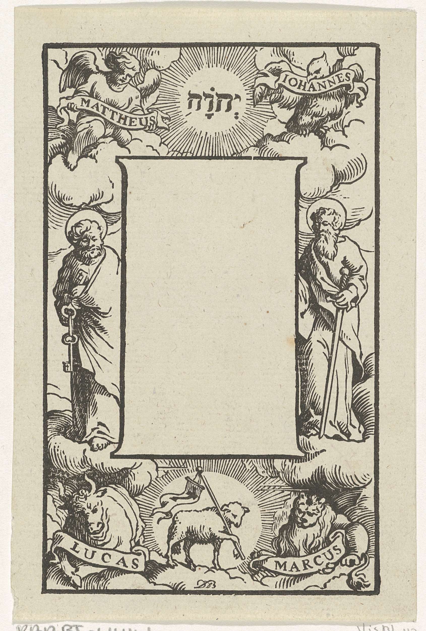 Letter D in een omlijsting met een bijbelse voorstel...
