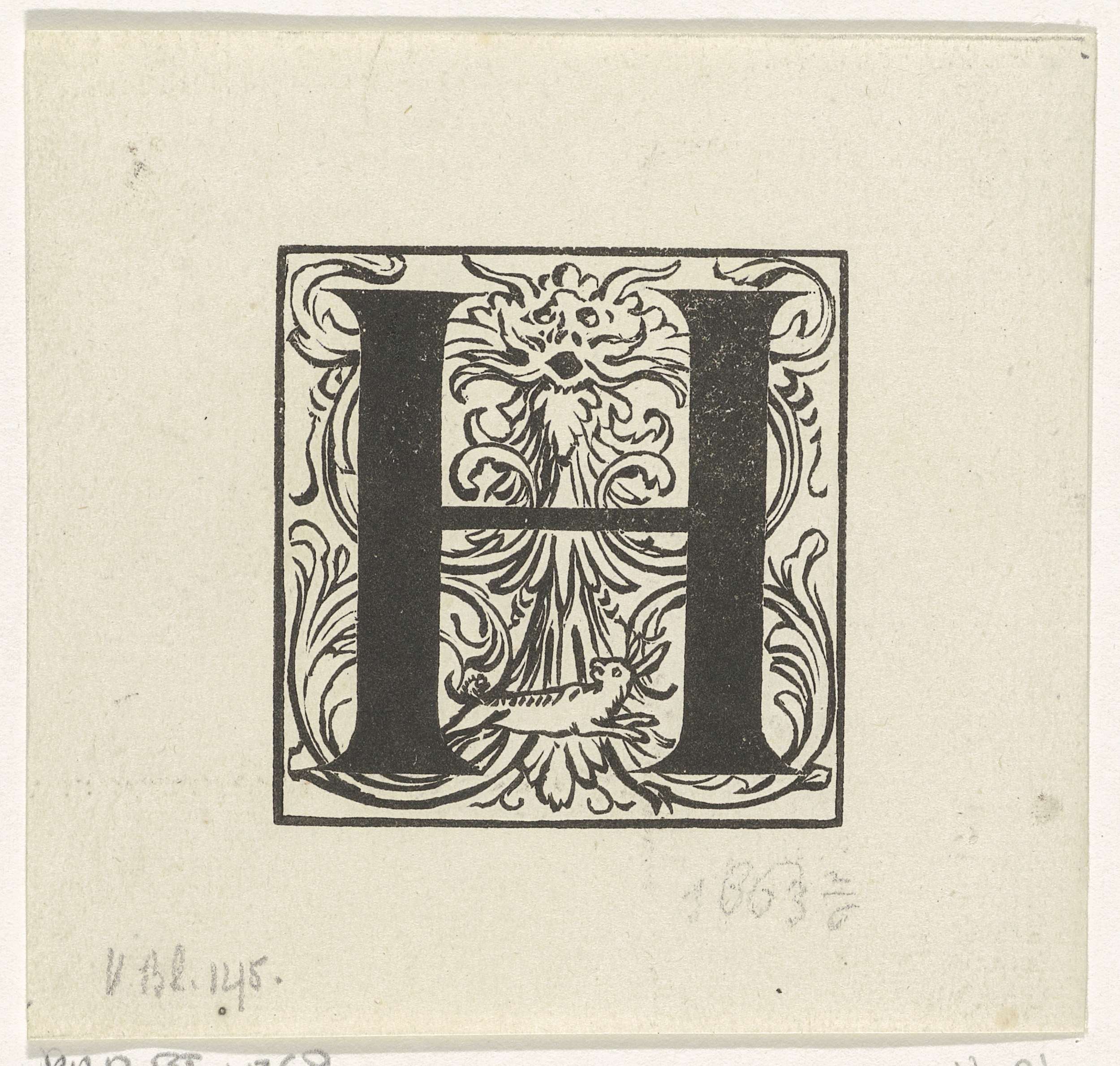 Letter H in een geornamenteerde omlijsting