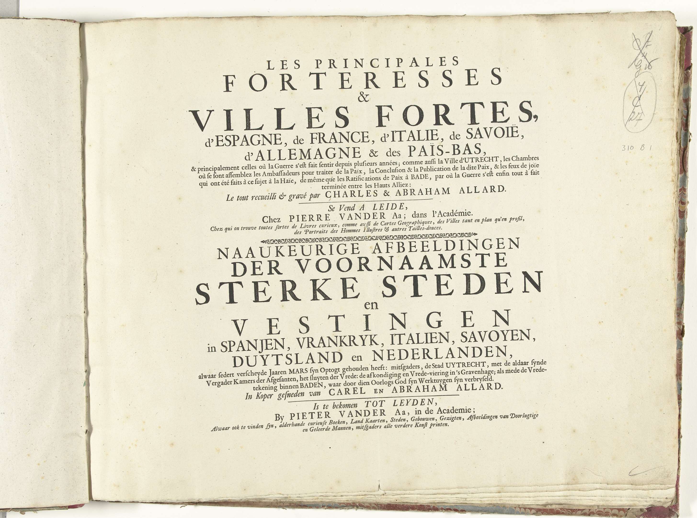 Album met het prentwerk: Les Principales Forteresses...