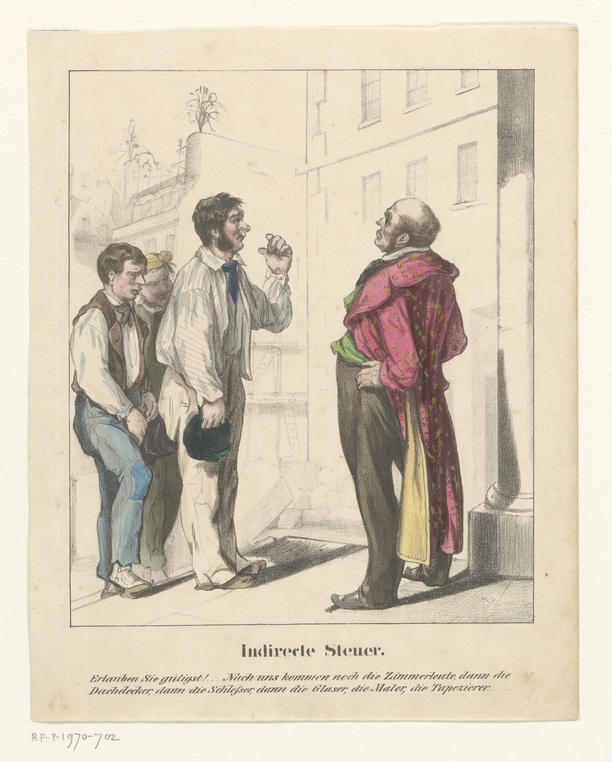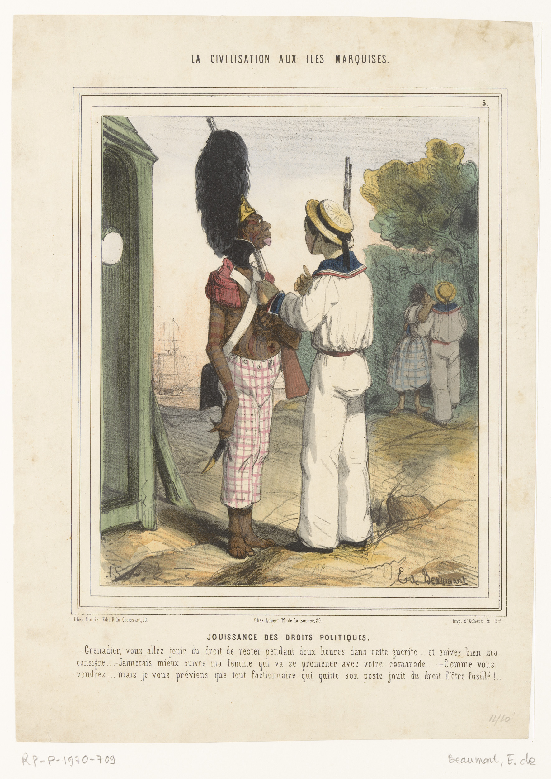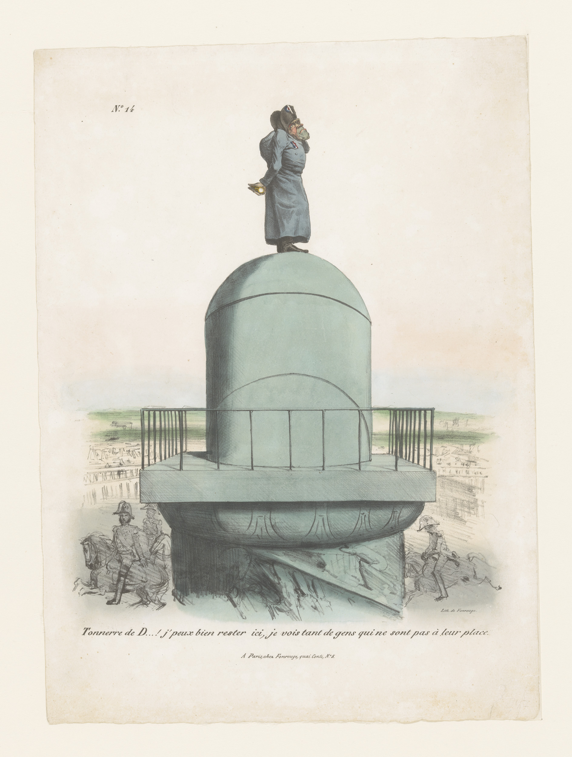 Karikatuur van een grenadier die op zijn post moet b...
